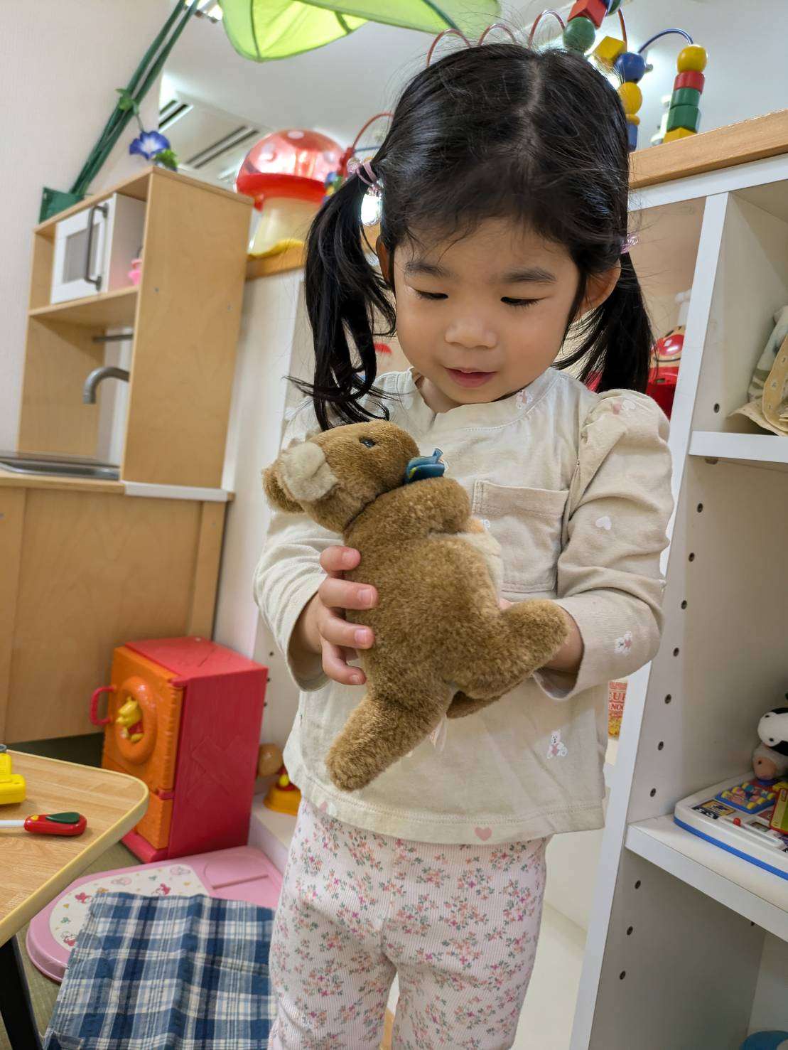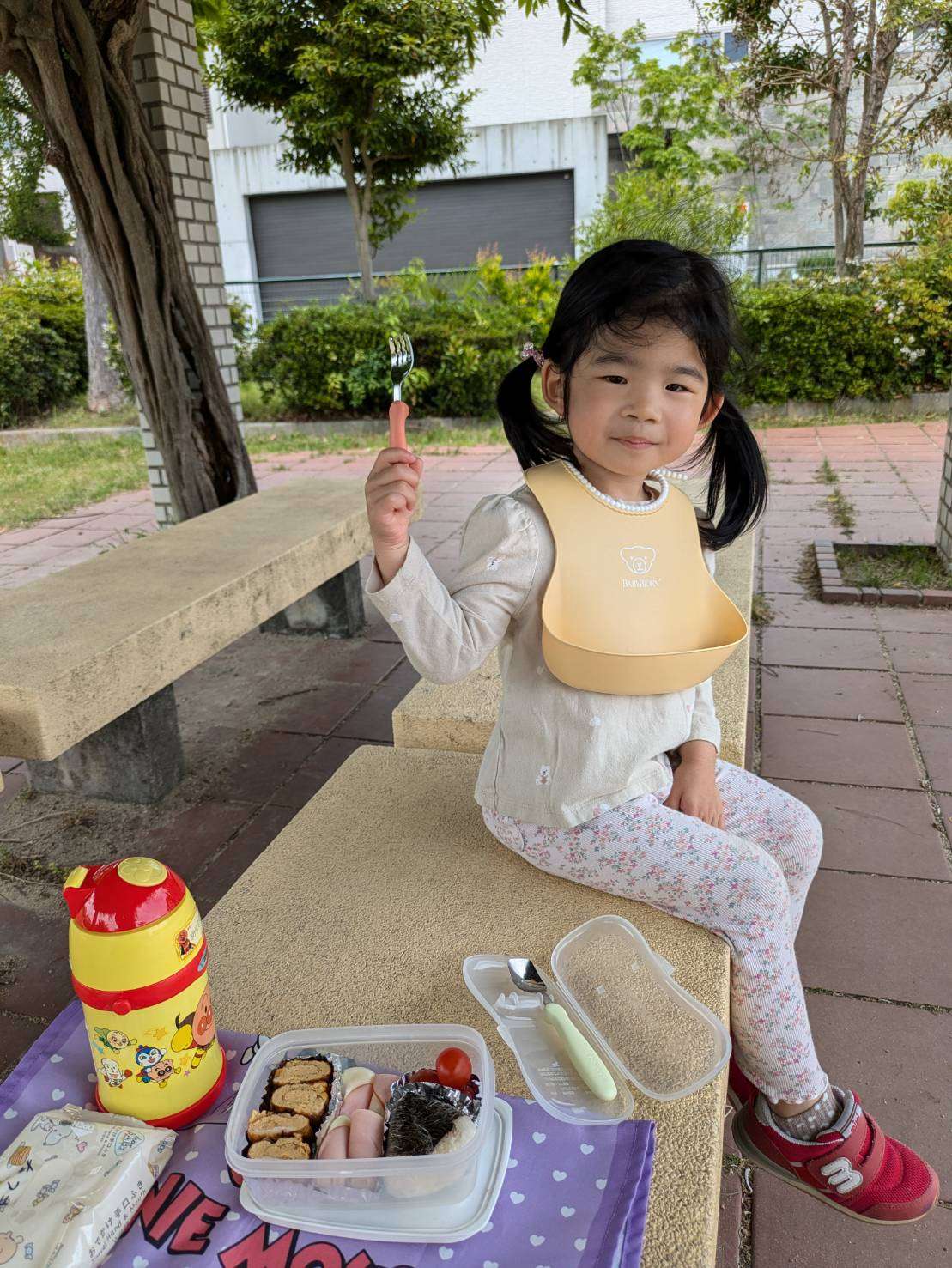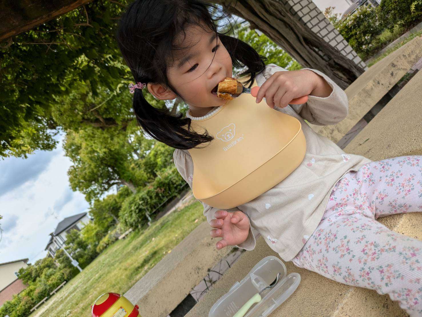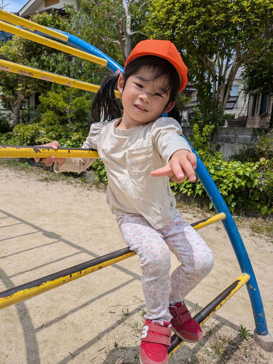 わんぱくポケット保育園⭐️ 2025/05/15 お散歩お散歩⭐ 今日も朝からご機嫌で沢山色んな事をして遊んだ1日でした。⭐ お弁当を持って今日は坂道を上り、広い公園まてお出かけしました。色んな動物や虫の石像があり、一つ一つまたがりご満悦です🤗♥️