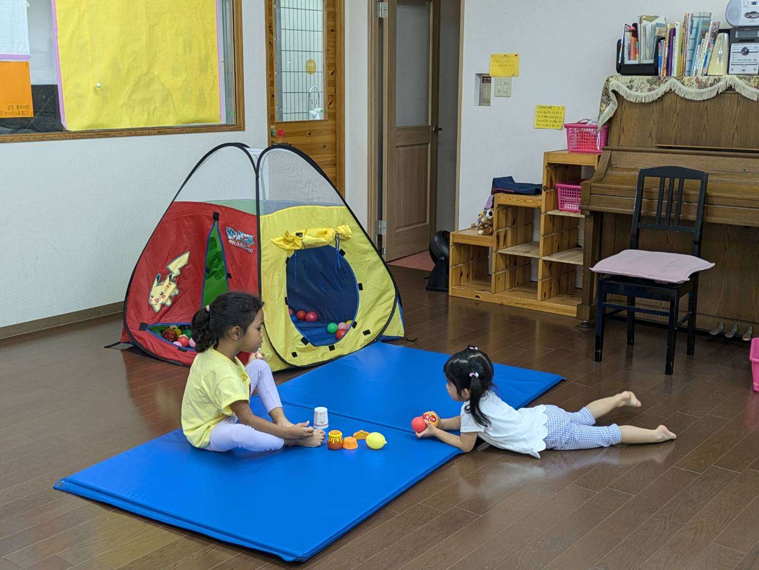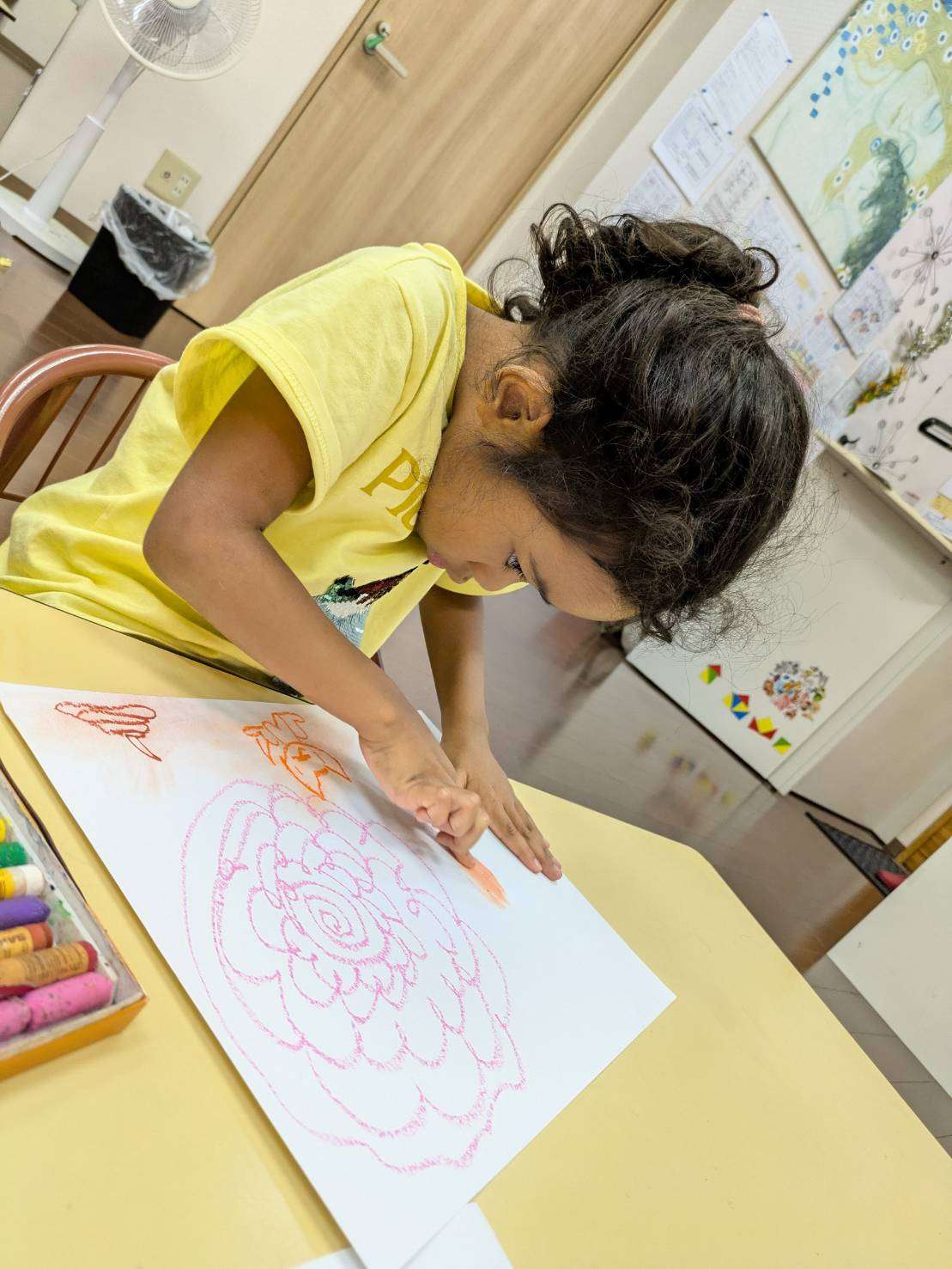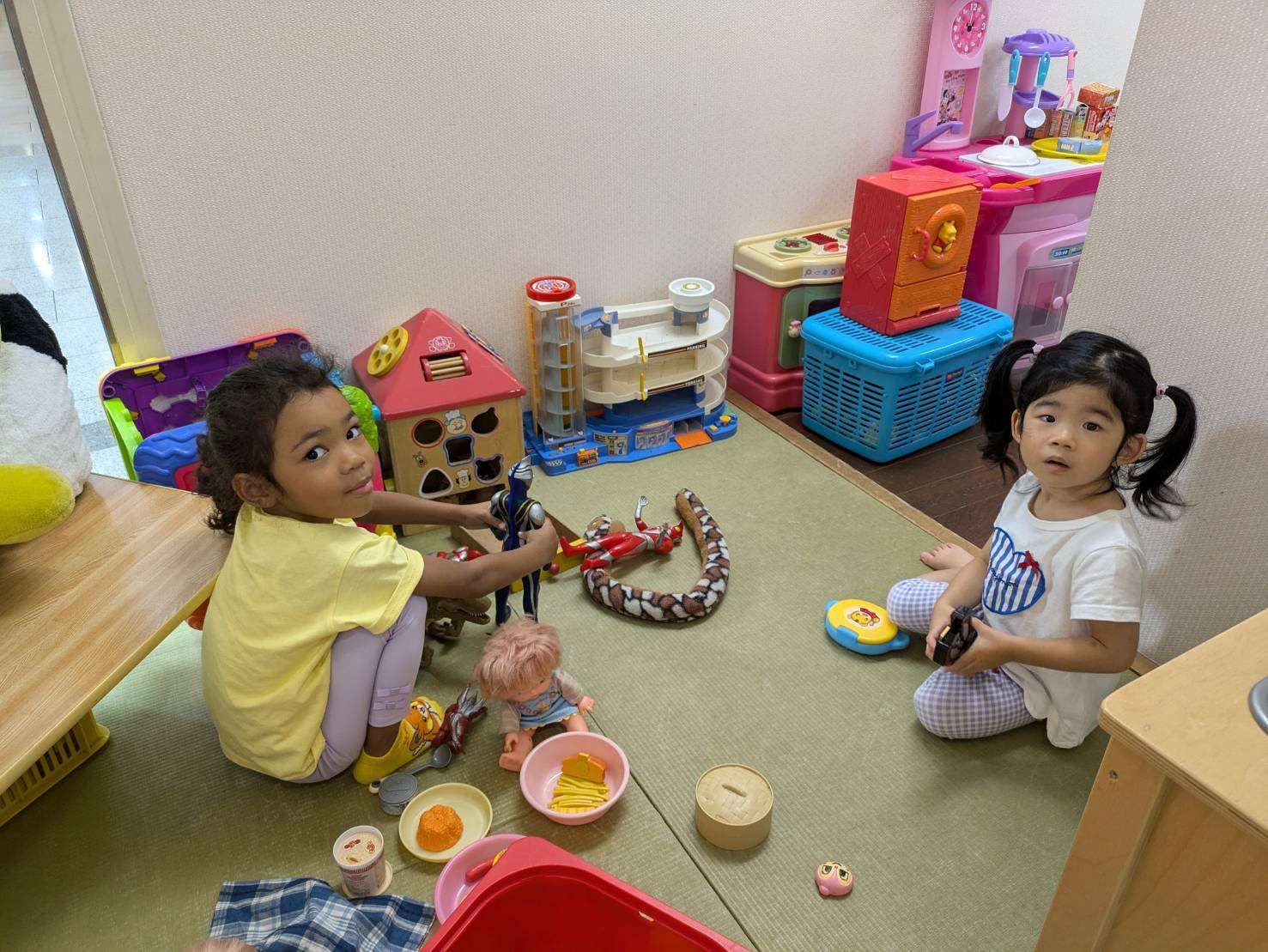 わんぱくポケット⭐️ 2025/06/12 わんぱくさんの楽しい1日⭐ 1年ぶりにアメリカ🇺🇸から帰ってきたお友達との再会❤️ お互い大きくなって。少しお姉さんになりました✨ でも、お互いなんだか覚えてるみたいであっという間に仲良く遊びは初めました。 モニョモニョお話しています。🤗❤️ 今日は「クレヨンのくろくん」の絵本を読んでから白い画用紙にクレヨンでカラフルにお絵かきしてから真っ黒い絵の具で塗りつぶして色が鮮やかに浮き出てくるのを楽しみました🌈