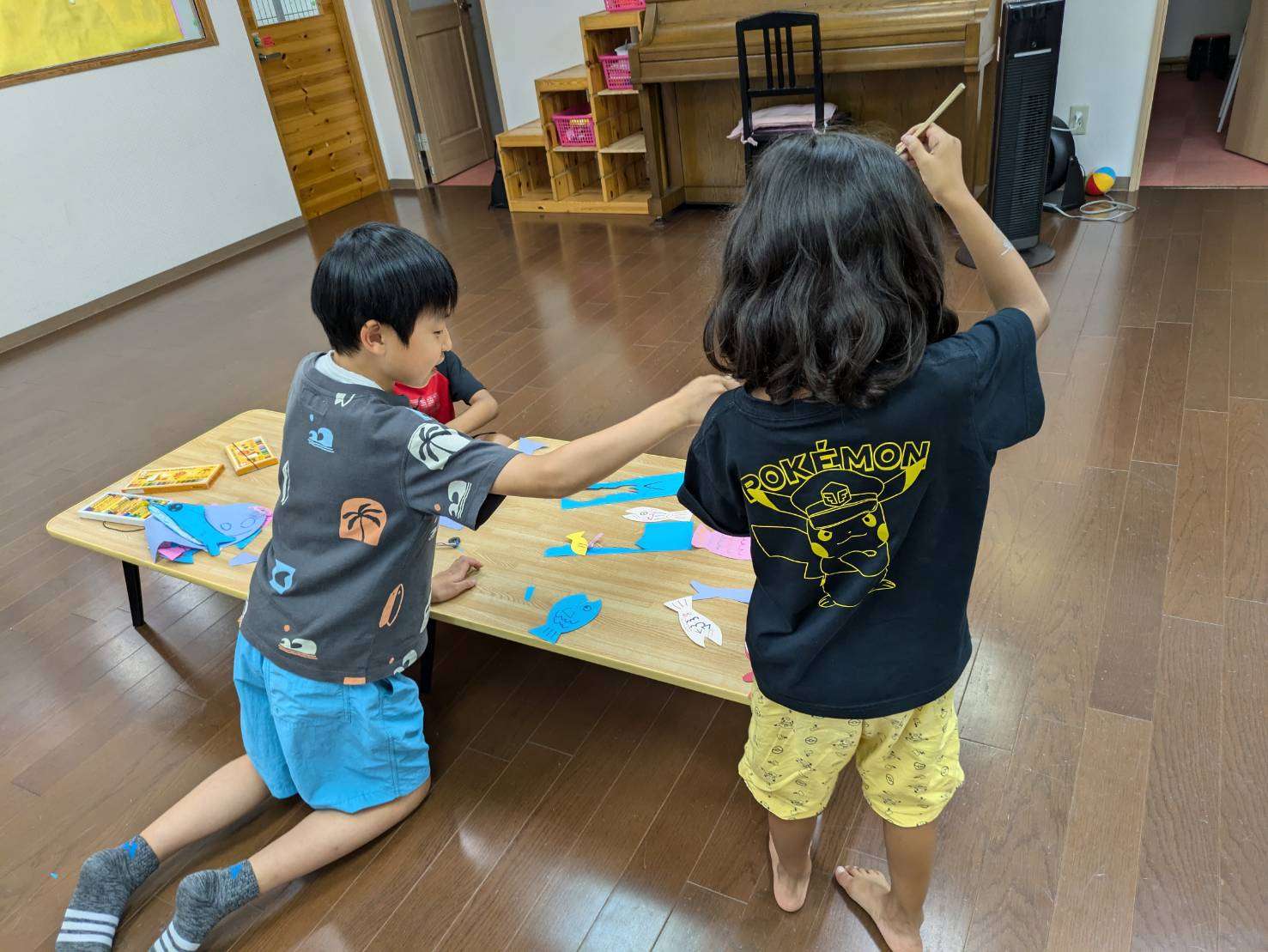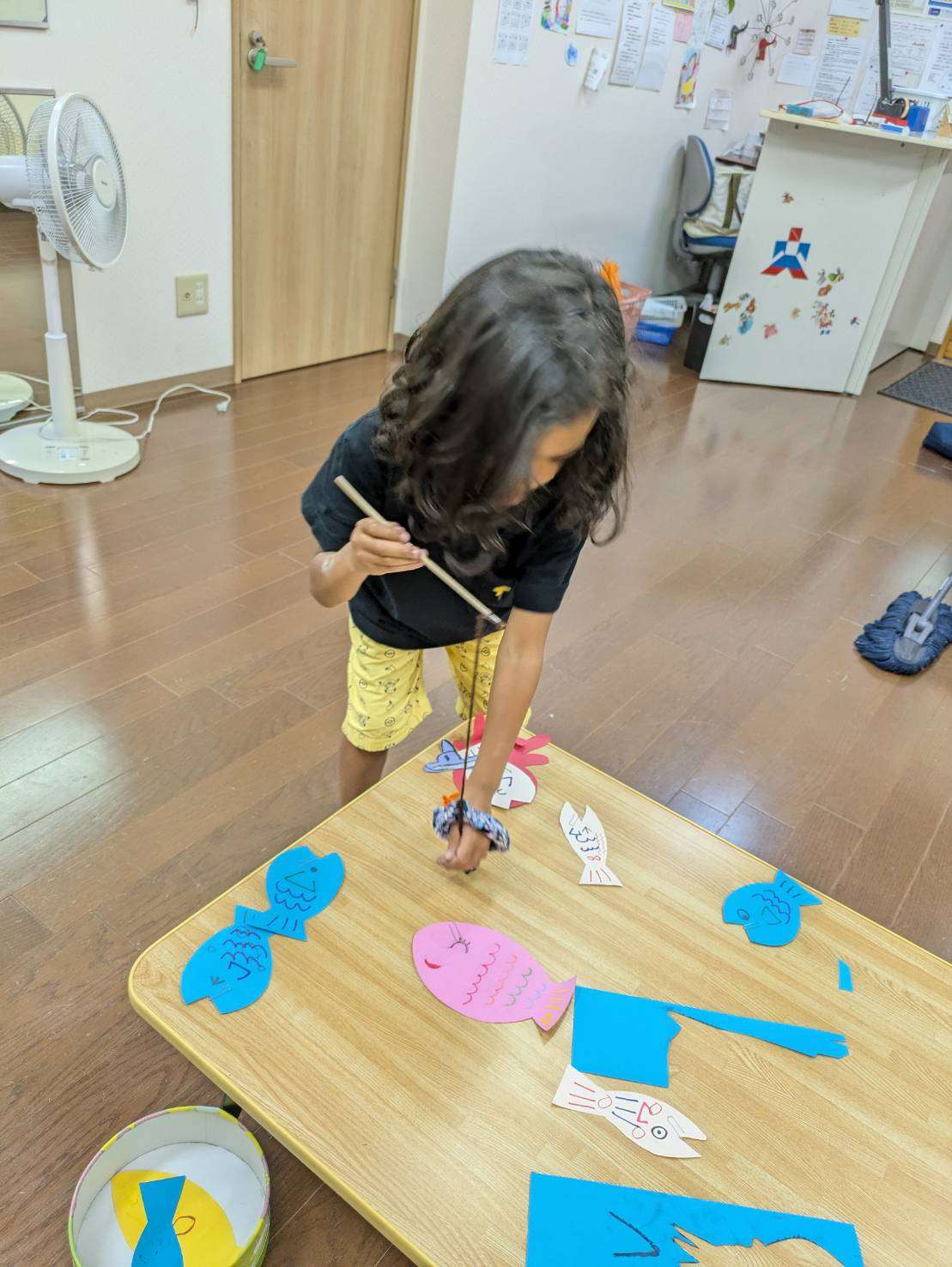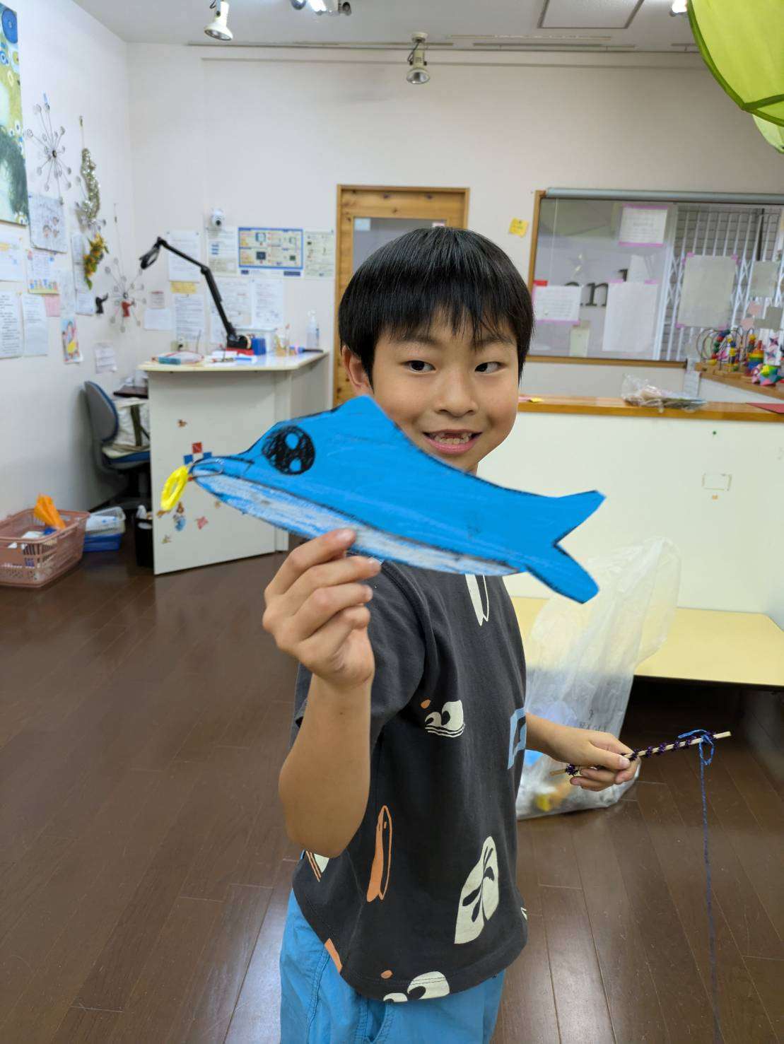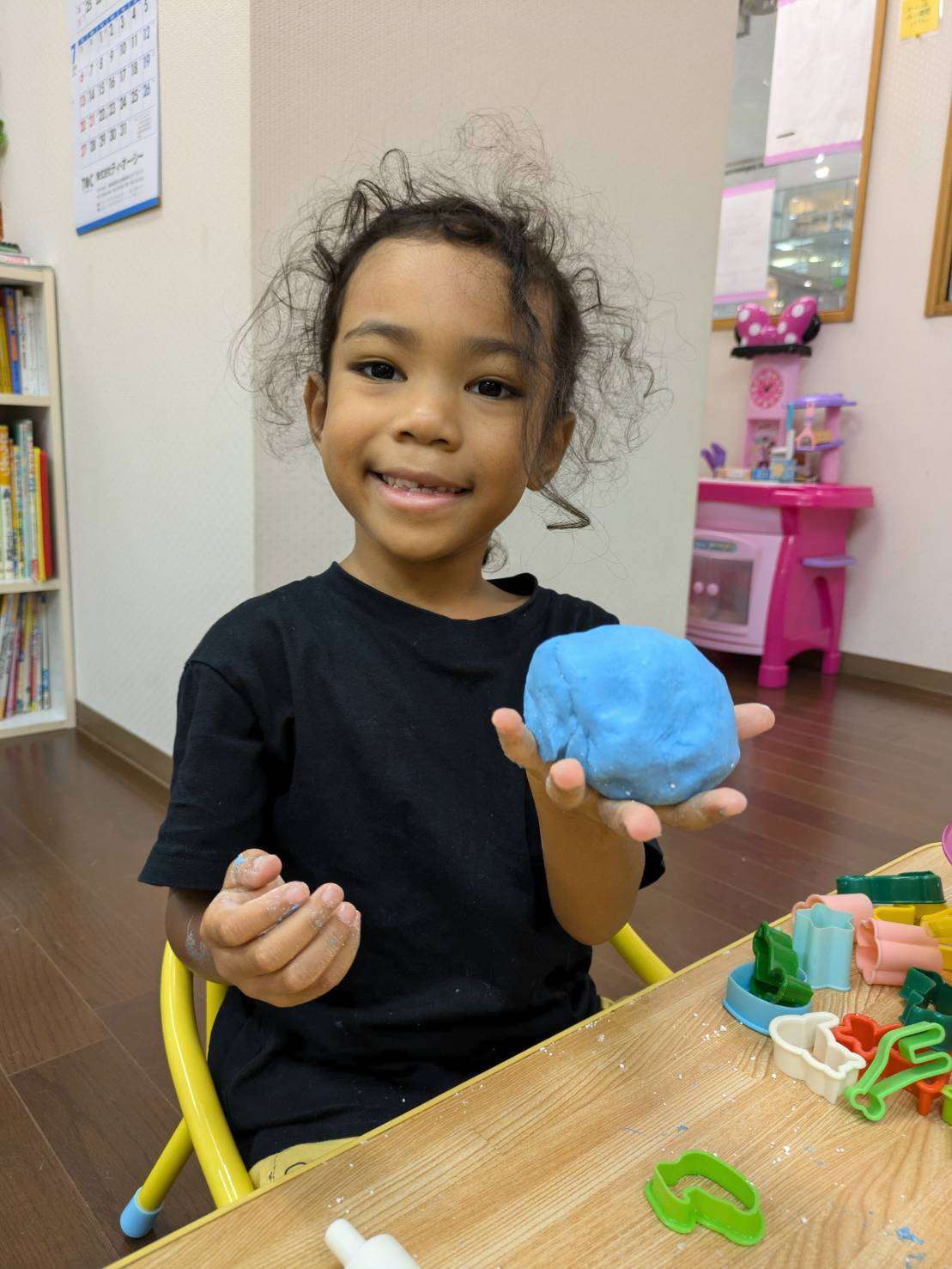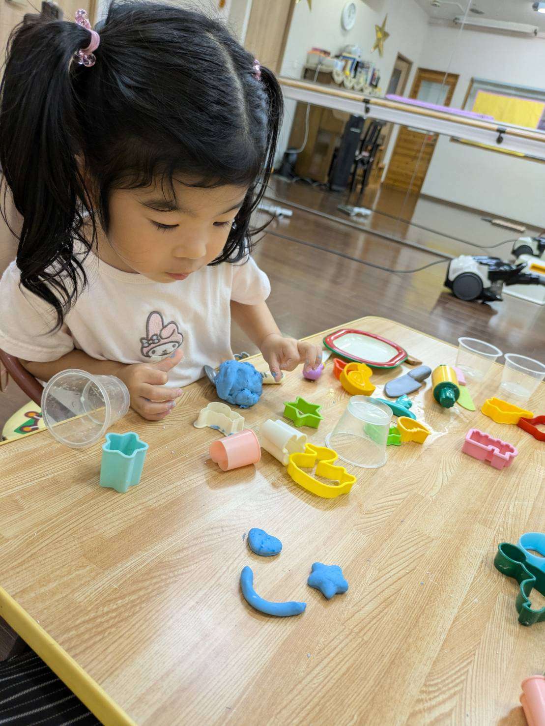 わんぱくポケット保育園⭐️ 2025/06/26 青色の小麦粉粘土遊び✨ 鮭とひじきごはん⭐️丸天付き♥️ 全部残さず食べました✨ 苦手な鮭を克服しました😆 魚釣り🎣 今日は小麦粉粘土の色を変えて新たに青色粘土を粉から作りました🤗✨ 若干教室が粉っぽいのですが、ふわふわ柔らかい感触の小麦粉粘土に子ども達はもう夢中です。🐸 何度もお片付けしてランチにしようと誘いましたが、全て断られようやく遊び始めて1時間後に片付けを承諾してくれました✨ とことん遊べるのも、小さい保育園だからこそのメリットだな〜。なんて思います😊♥️ ランチのあとは床をピカピカに拭いて綺麗にお掃除✨ 放課後倶楽部では魚の絵を描いて魚釣り遊びをしました🎣🐟️🐠🐟️