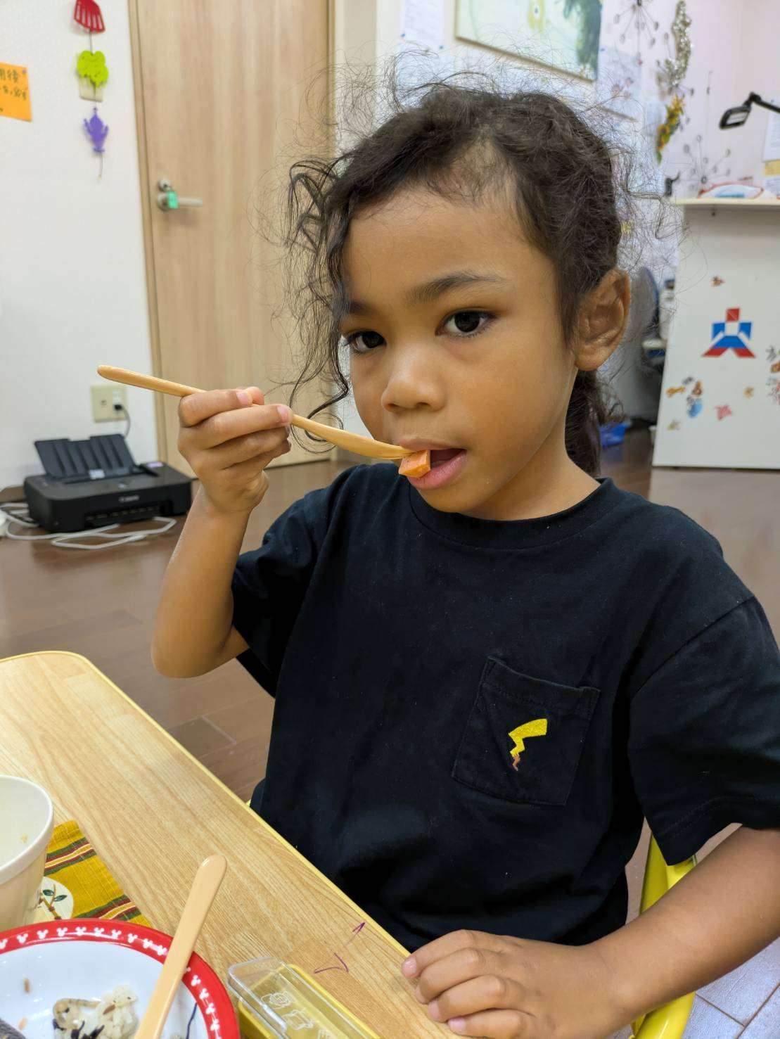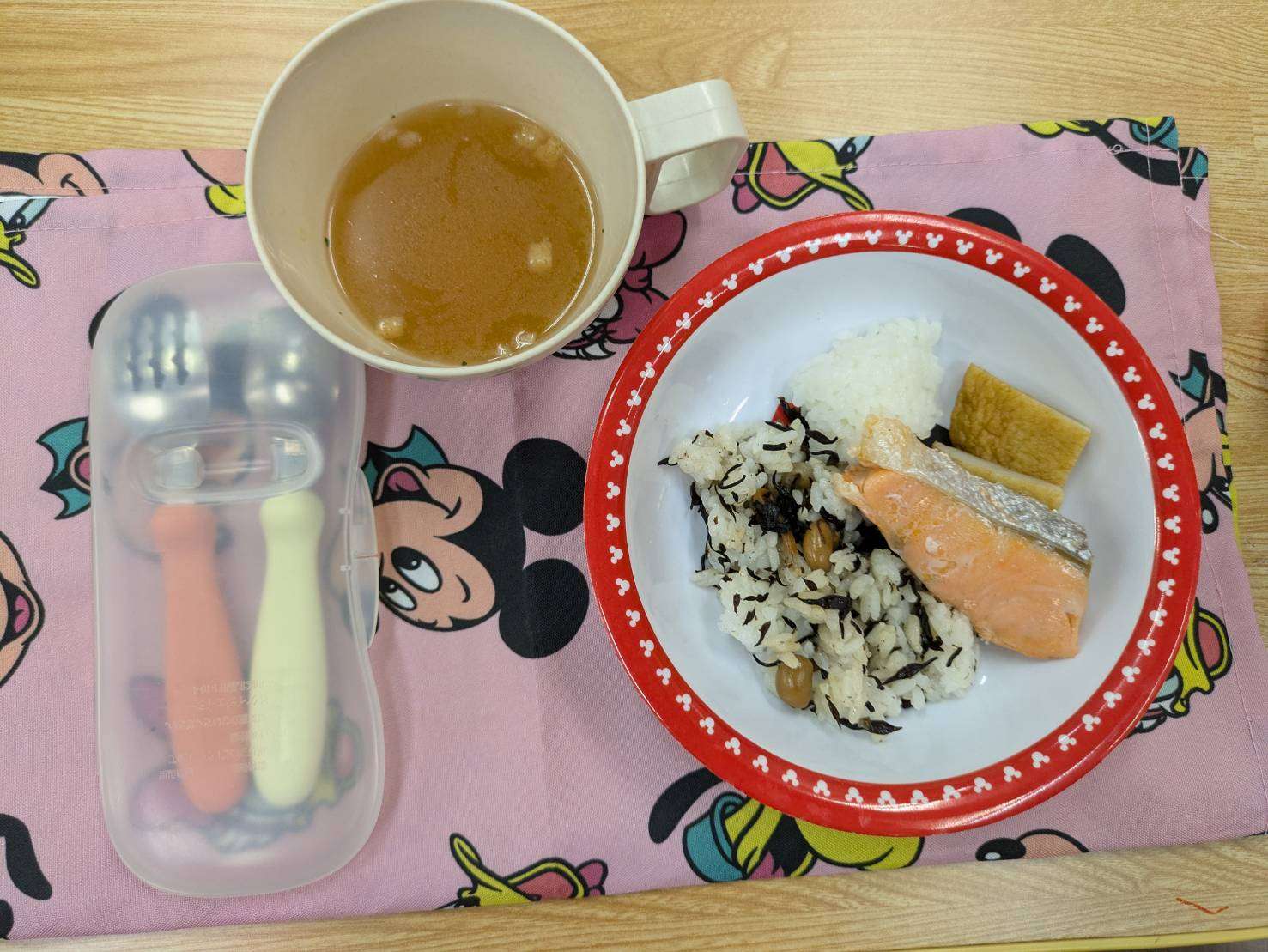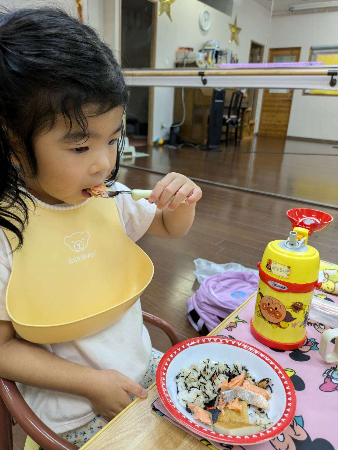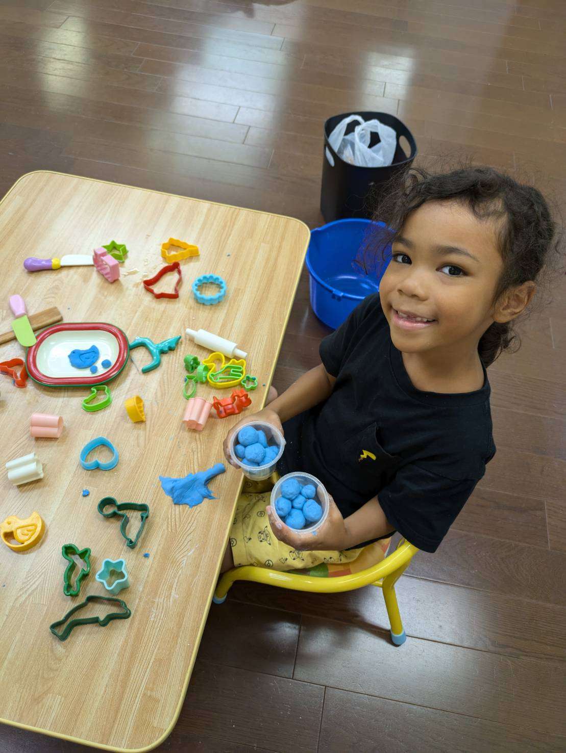 わんぱくポケット保育園⭐️ 2025/06/26 青色の小麦粉粘土遊び✨ 鮭とひじきごはん⭐️丸天付き♥️ 全部残さず食べました✨ 苦手な鮭を克服しました😆 魚釣り🎣 今日は小麦粉粘土の色を変えて新たに青色粘土を粉から作りました🤗✨ 若干教室が粉っぽいのですが、ふわふわ柔らかい感触の小麦粉粘土に子ども達はもう夢中です。🐸 何度もお片付けしてランチにしようと誘いましたが、全て断られようやく遊び始めて1時間後に片付けを承諾してくれました✨ とことん遊べるのも、小さい保育園だからこそのメリットだな〜。なんて思います😊♥️ ランチのあとは床をピカピカに拭いて綺麗にお掃除✨ 放課後倶楽部では魚の絵を描いて魚釣り遊びをしました🎣🐟️🐠🐟️
