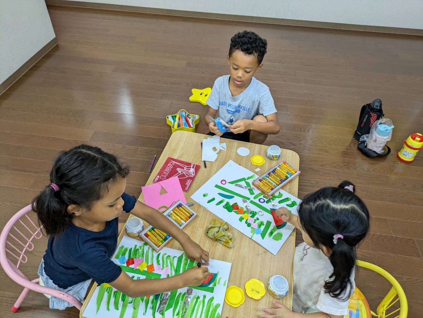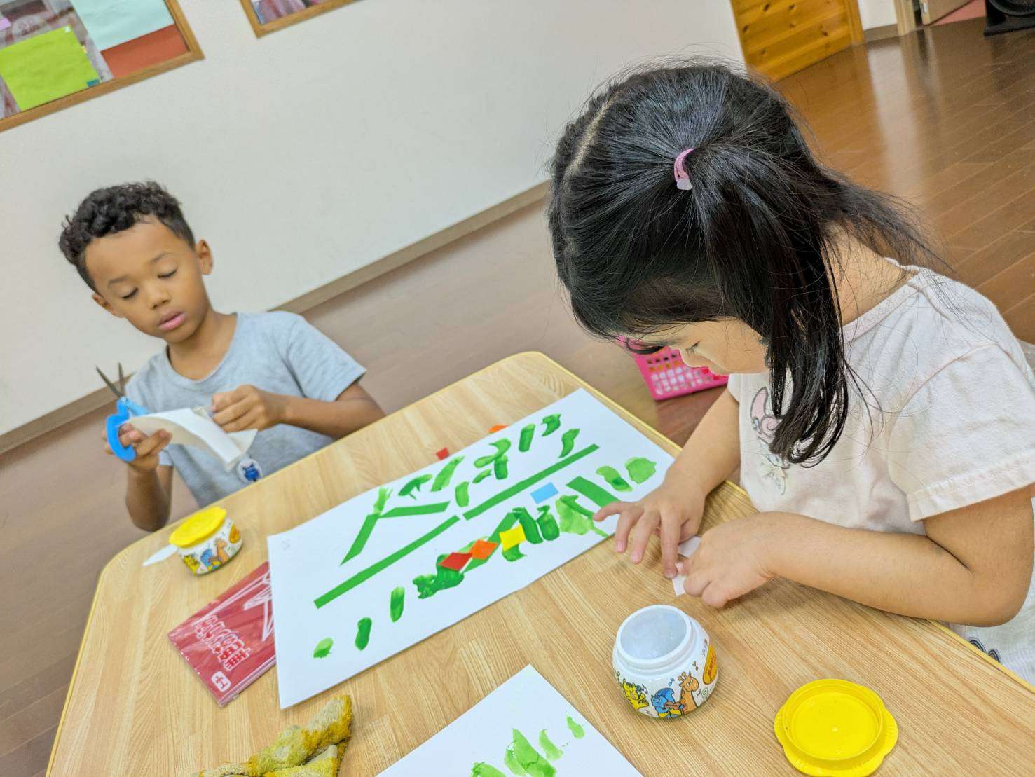 わんぱくポケット⭐️ 2025/07/03 七夕製作⭐️🎋2 今日は七夕飾りの続きをしたよ、🎋 お勉強も今日はいつもより沢山時間を掛けて頑張ってました😊♥️ 放課後倶楽部では万博のミャクミャクを折り紙で作って遊びました✨