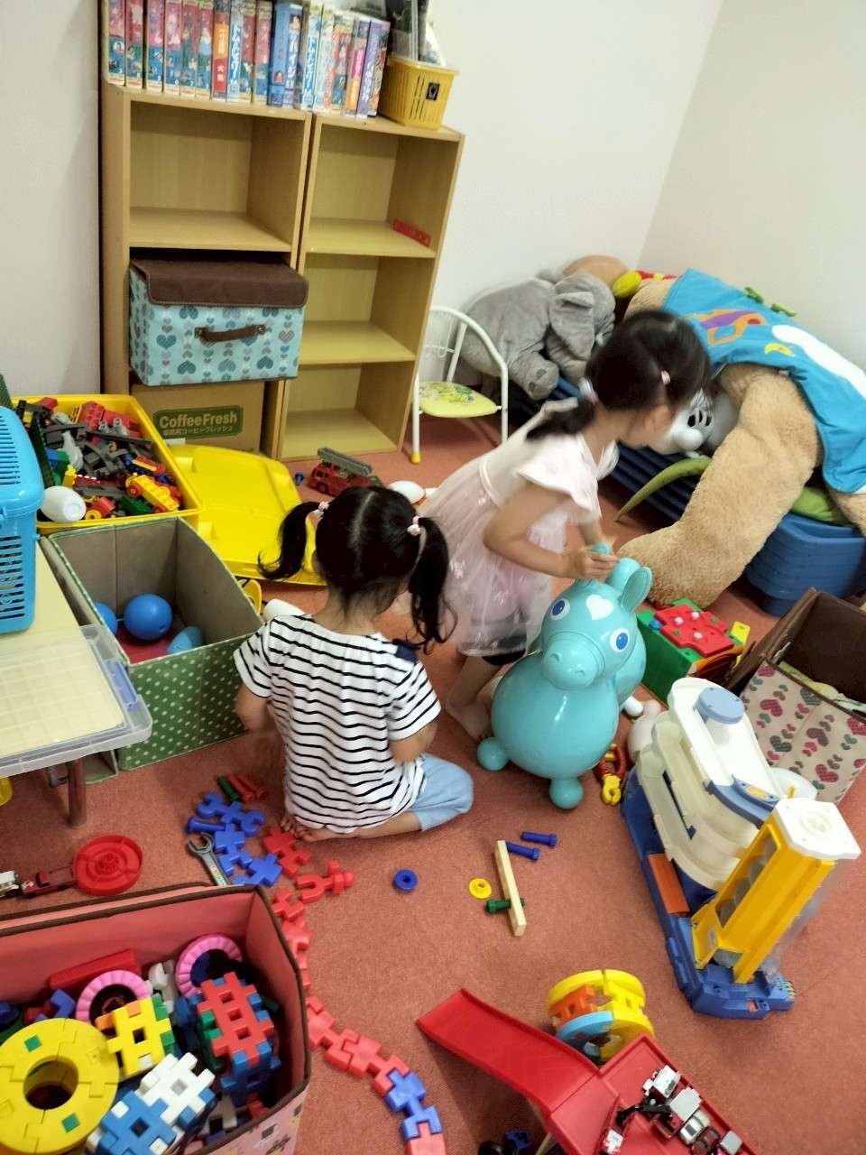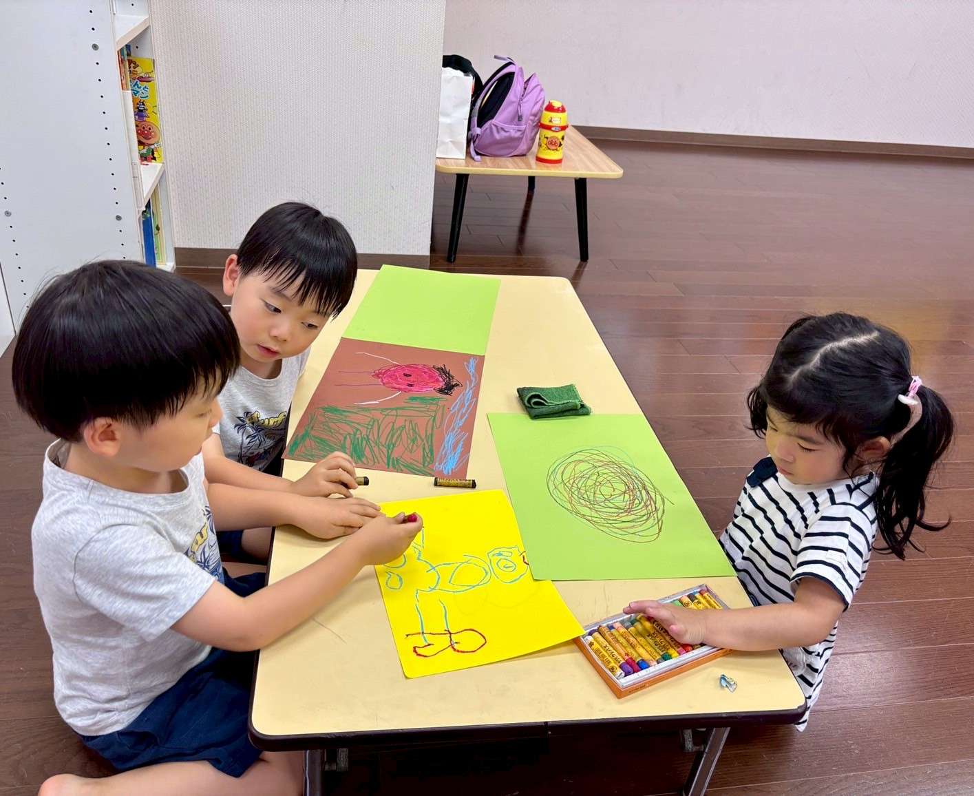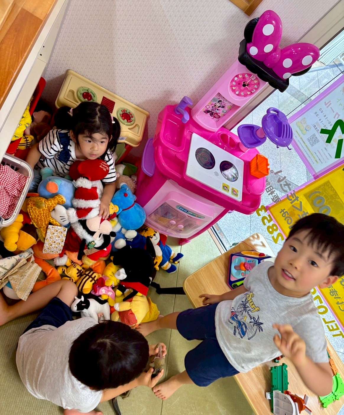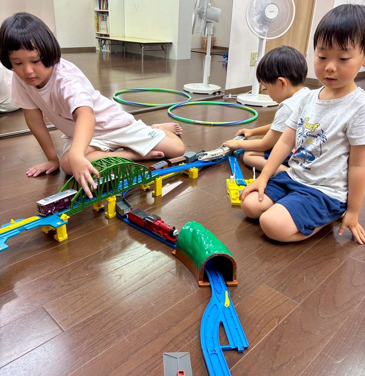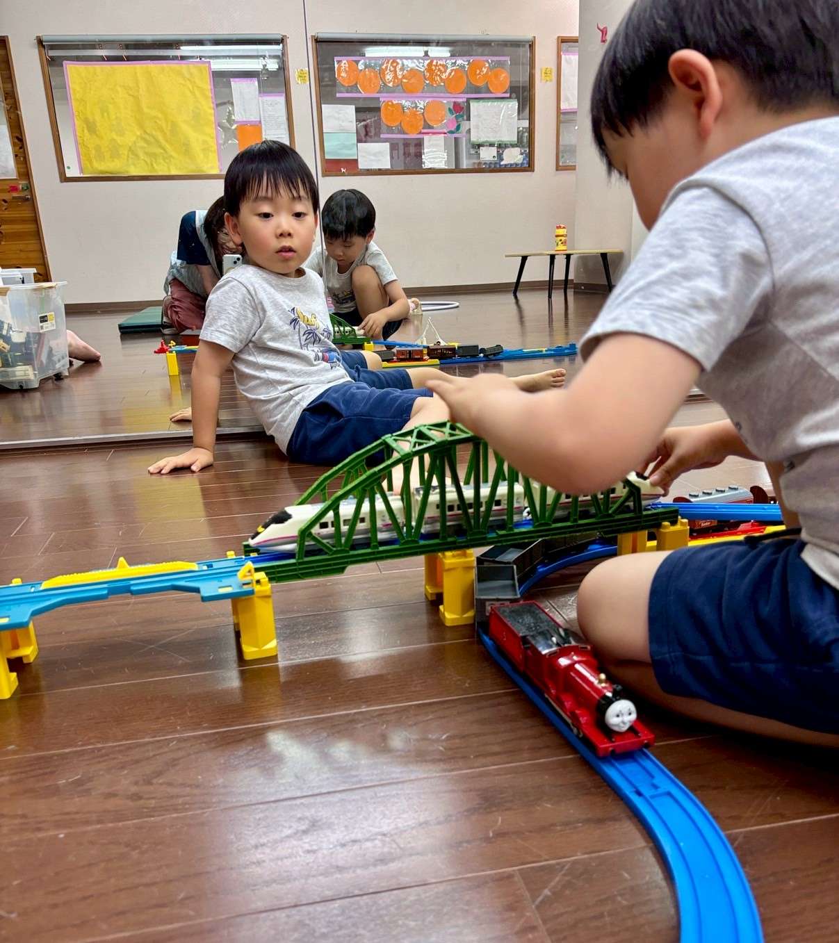 わんぱくポケット⭐️ 2025/07/31 今日はいつものメンバーで久し振りに集まりました❤️ 久し振りの再会ですが、毎日会っているかのように仲良しの4人なのだ😆✨ 先生のお兄ちゃんにも沢山遊んでもらいました⭐