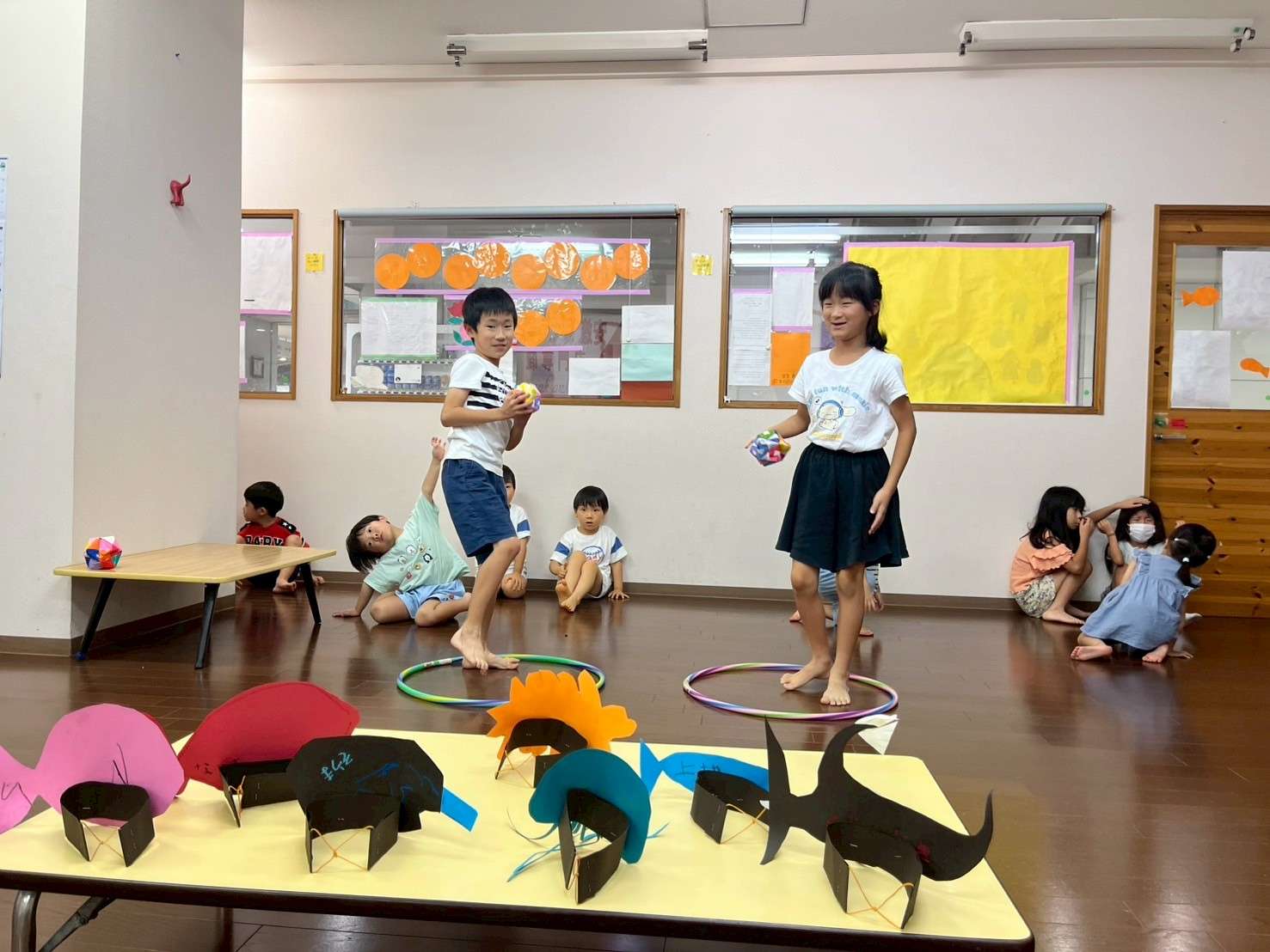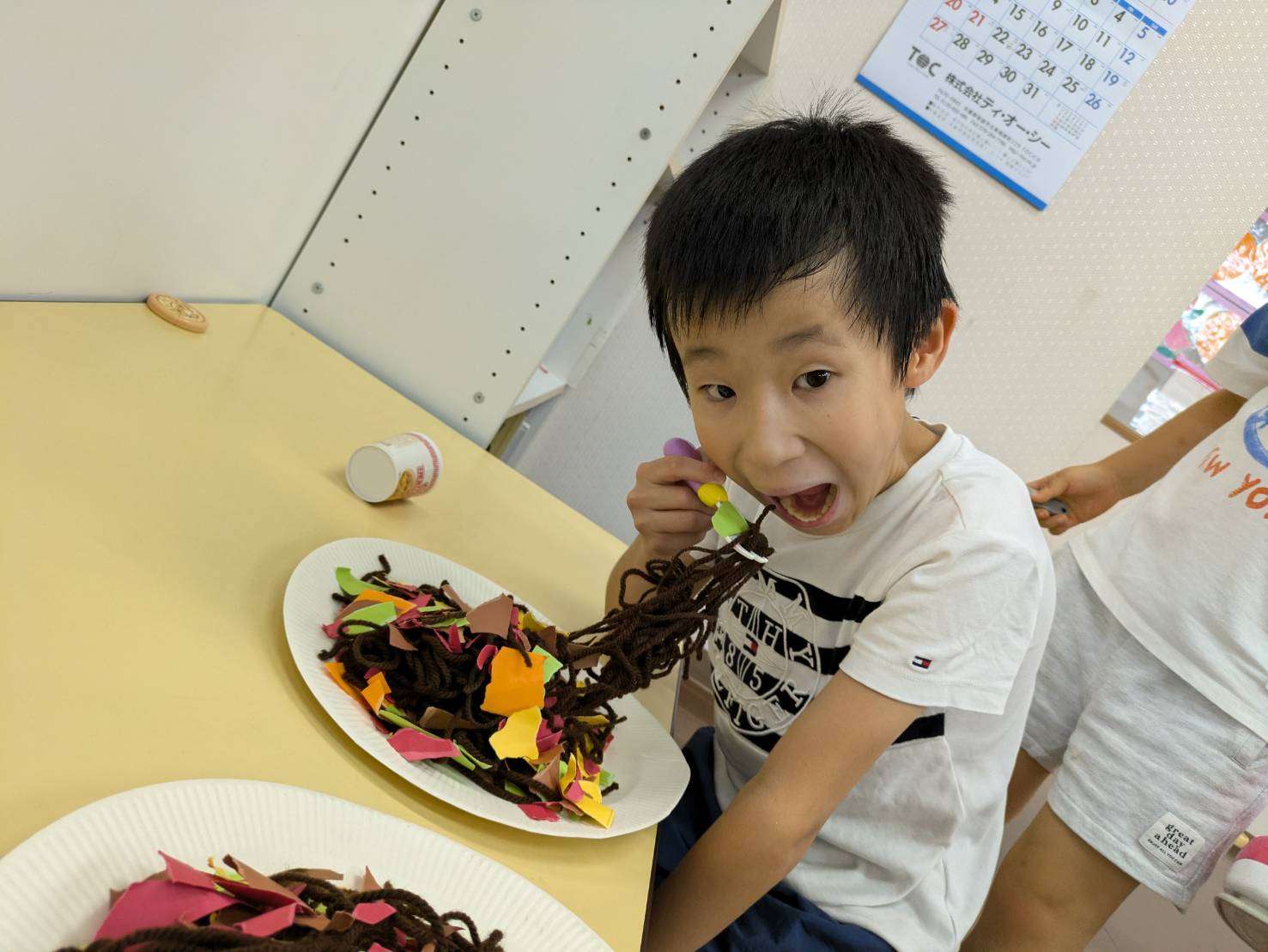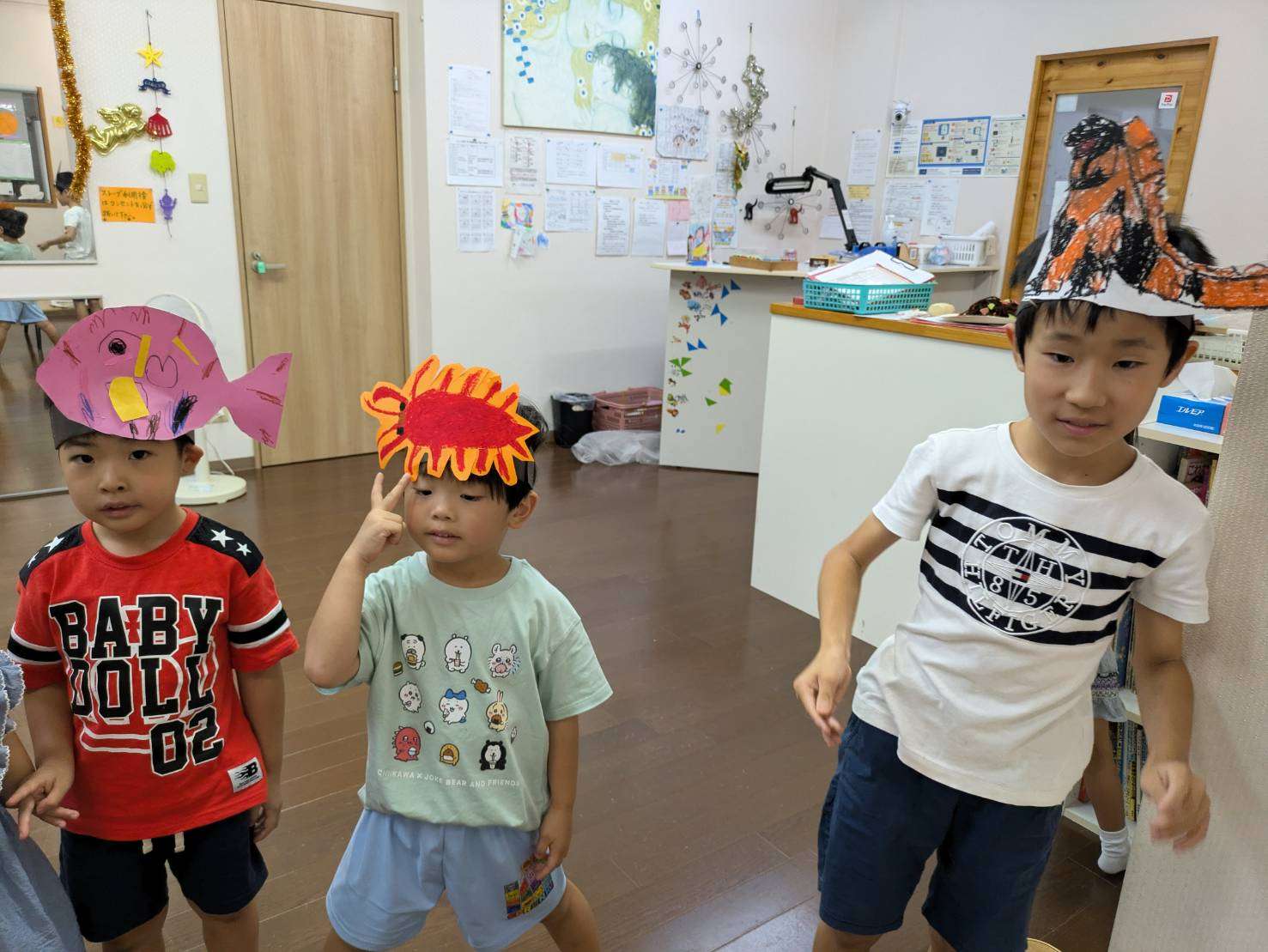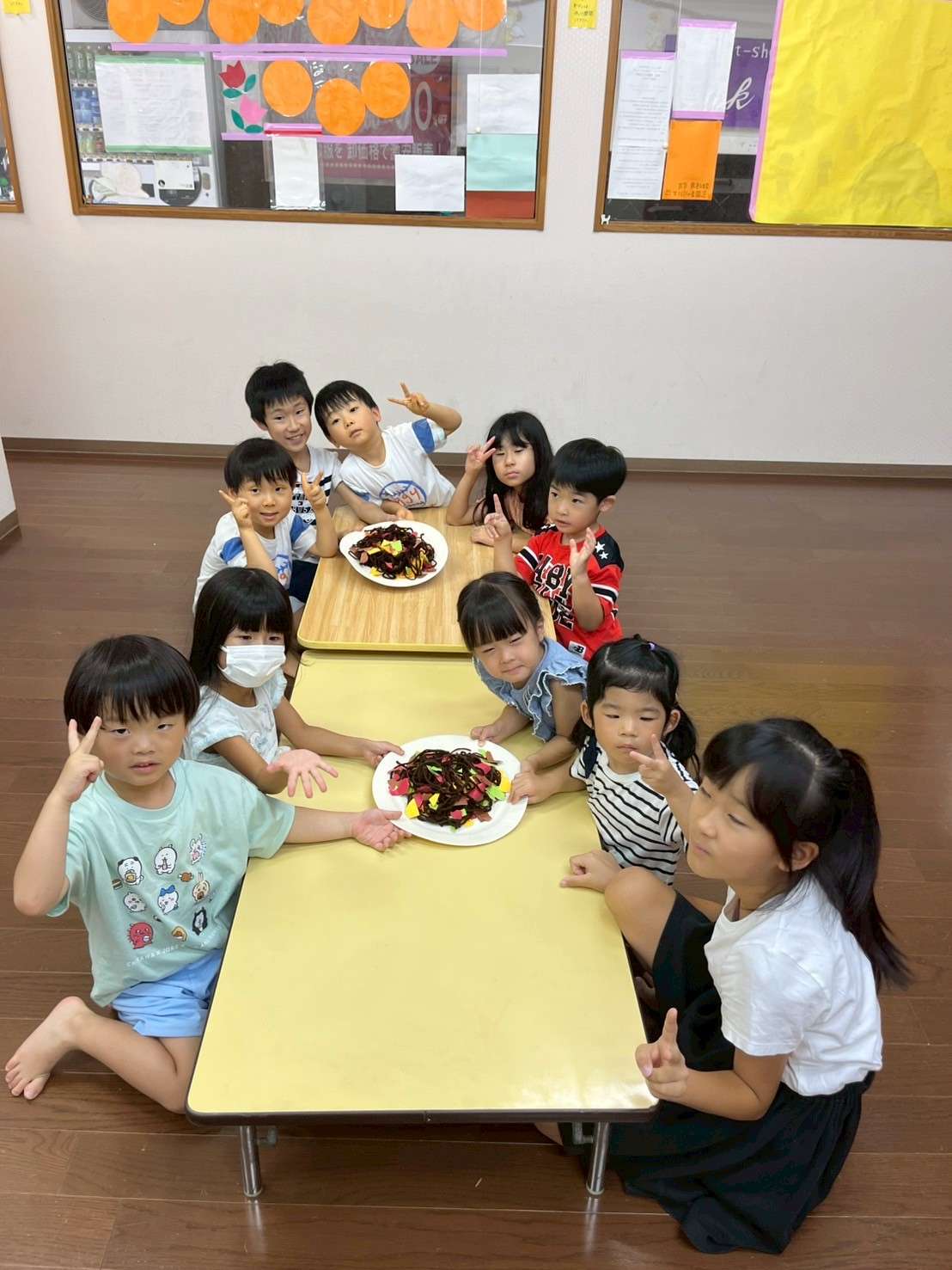 わんぱくポケット⭐️ 2025/08/19 お祭り屋台遊びだよ🎆😆✨ 夏休みもそろそろ終盤に差し掛かりました。お盆休みも明けて真っ黒に日焼けした子ども達🤗❤️ 家族、親戚の皆様と楽しくすごしたんだろうな〜🤗♥️と、みんなの表情を見て思いました。 私もサマースクールを無事に終え宝塚に帰ることができてとても嬉しく思います。😆✨ 今日は屋台遊びで毛糸で焼きそばを作ってみたり、射的、お面をかぶり楽しく過ごしました。⭐ 今日も小学生のお兄ちゃんお姉ちゃんが大活躍です!🏖️🎇