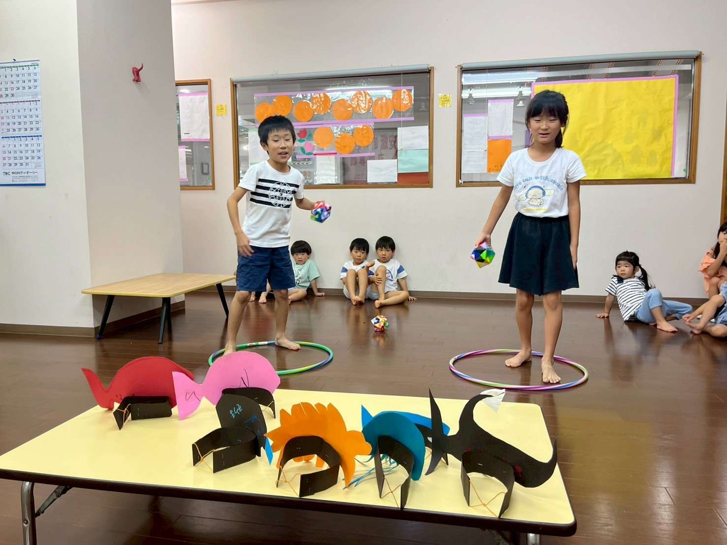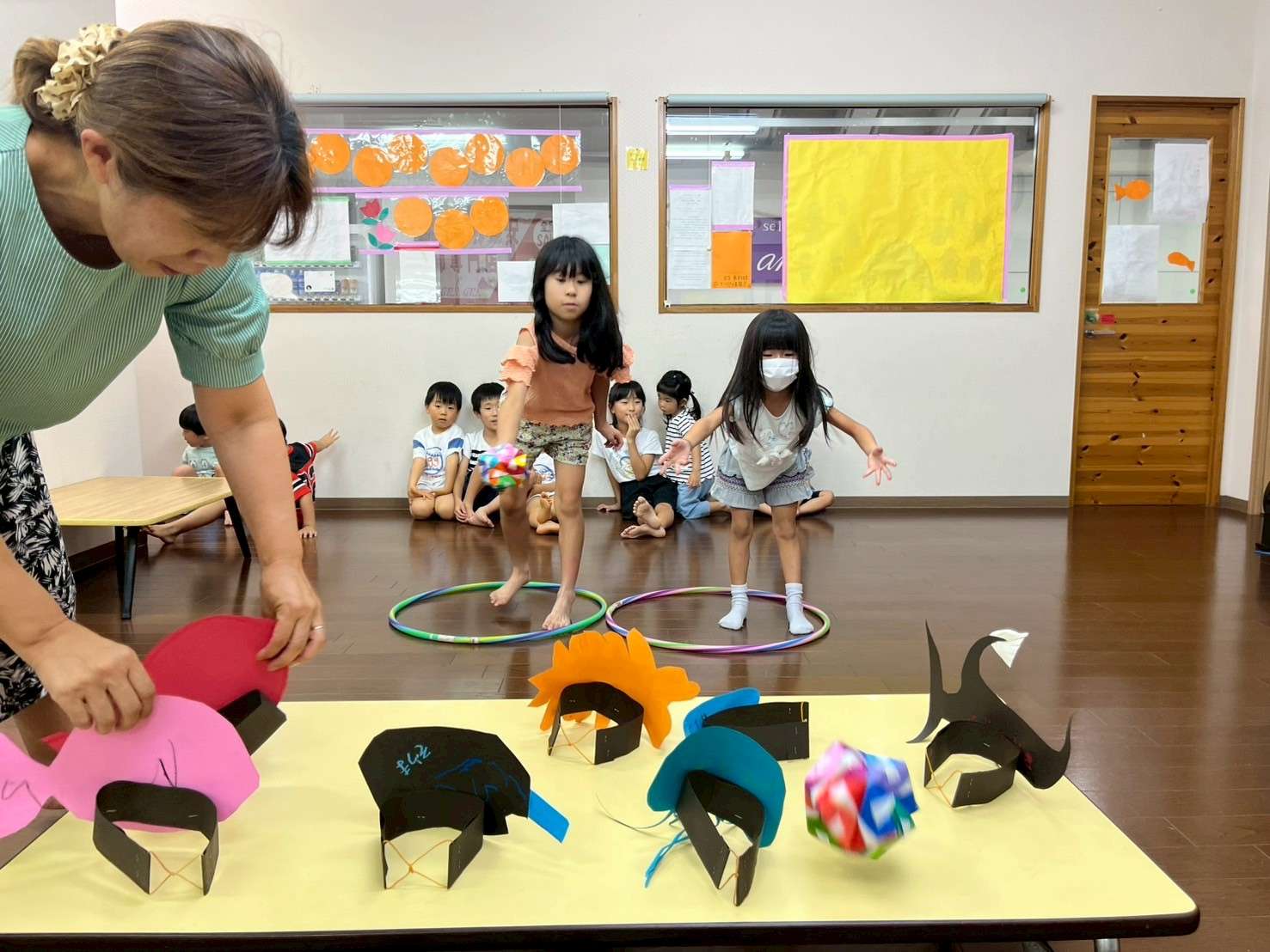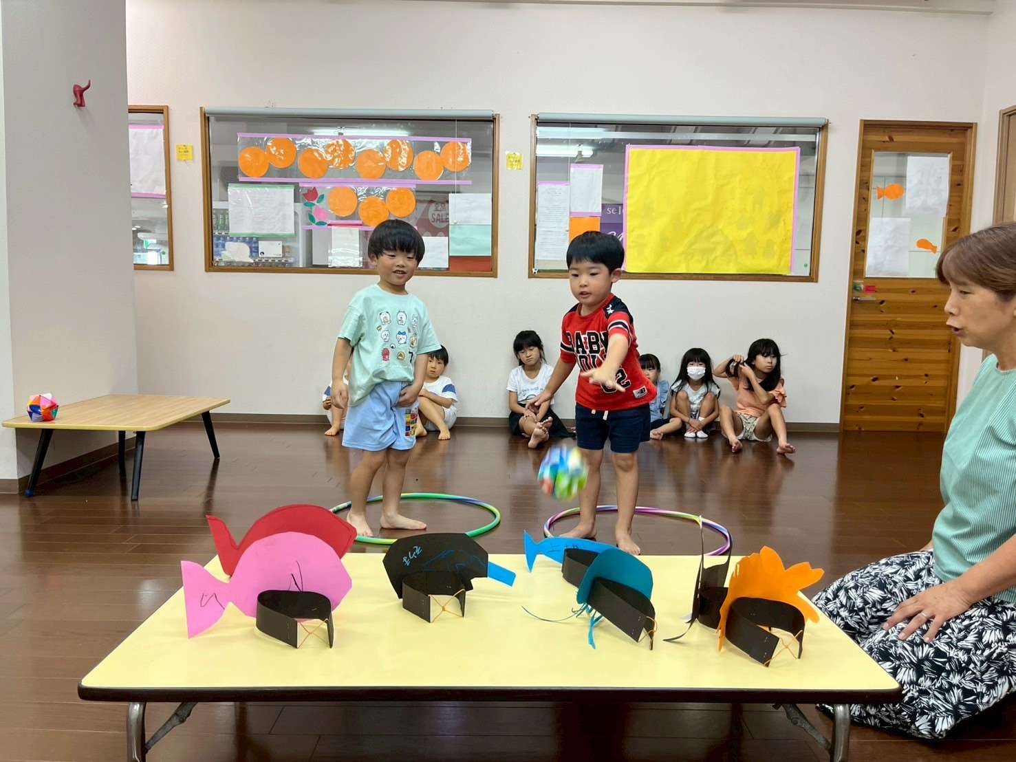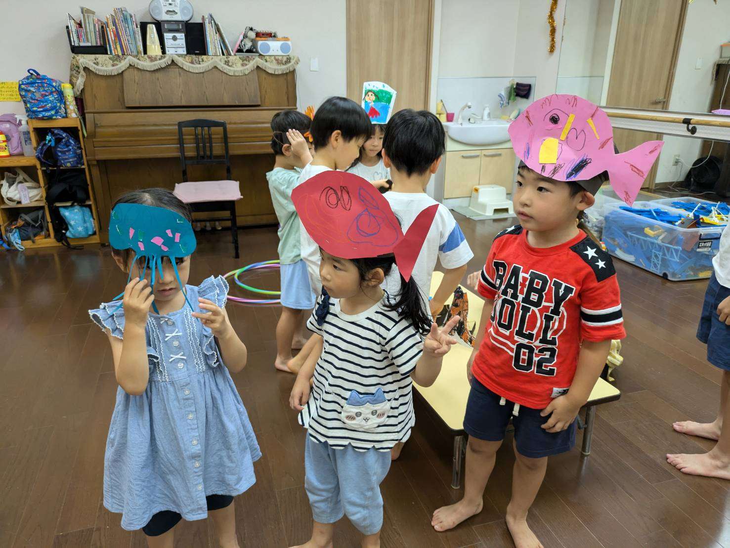 わんぱくポケット⭐️ 2025/08/19 お祭り屋台遊びだよ🎆😆✨ 夏休みもそろそろ終盤に差し掛かりました。お盆休みも明けて真っ黒に日焼けした子ども達🤗❤️ 家族、親戚の皆様と楽しくすごしたんだろうな〜🤗♥️と、みんなの表情を見て思いました。 私もサマースクールを無事に終え宝塚に帰ることができてとても嬉しく思います。😆✨ 今日は屋台遊びで毛糸で焼きそばを作ってみたり、射的、お面をかぶり楽しく過ごしました。⭐ 今日も小学生のお兄ちゃんお姉ちゃんが大活躍です!🏖️🎇
