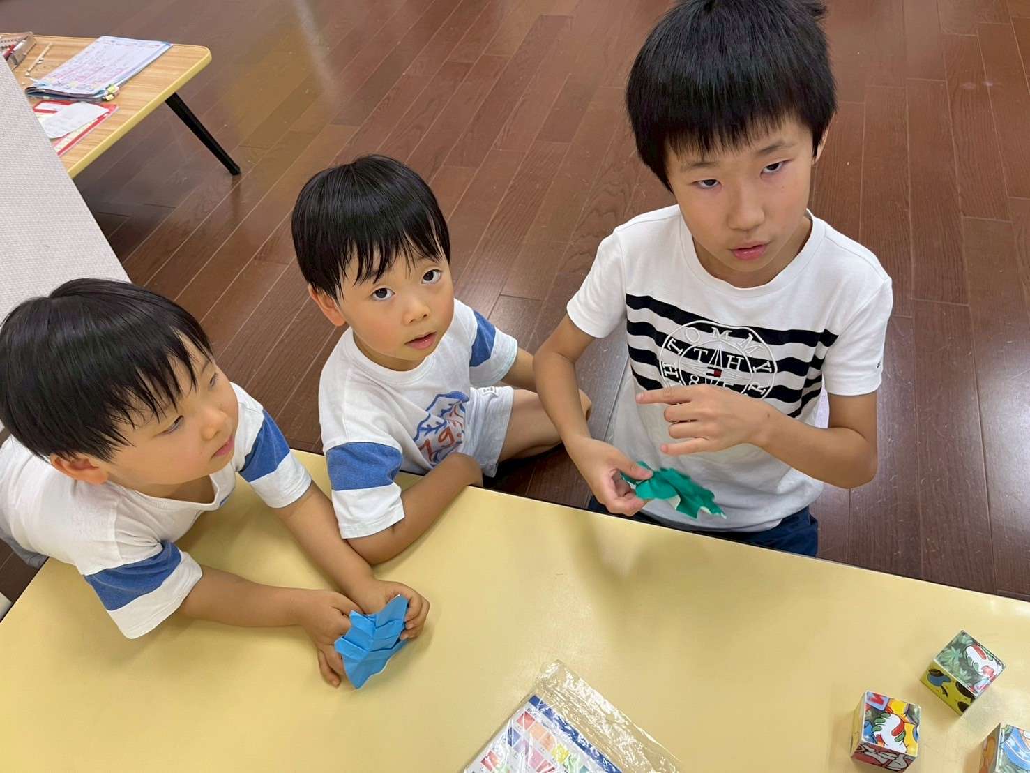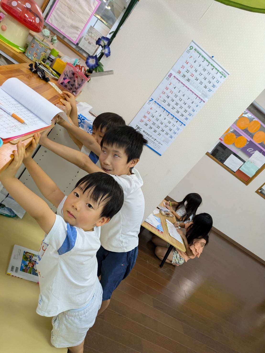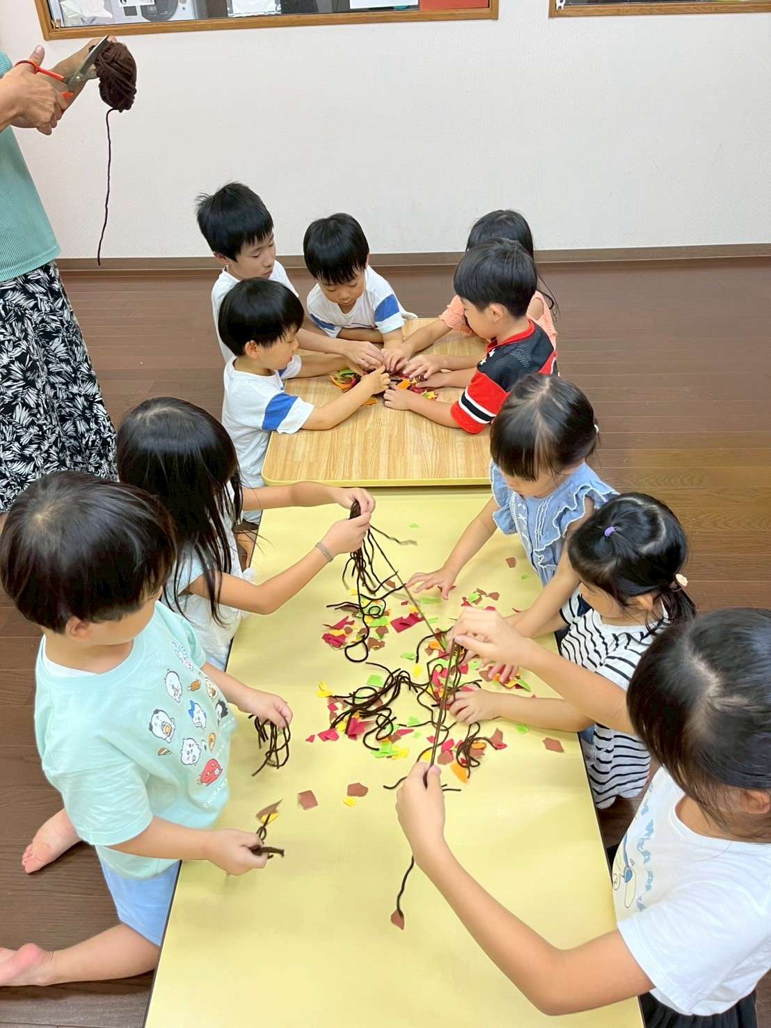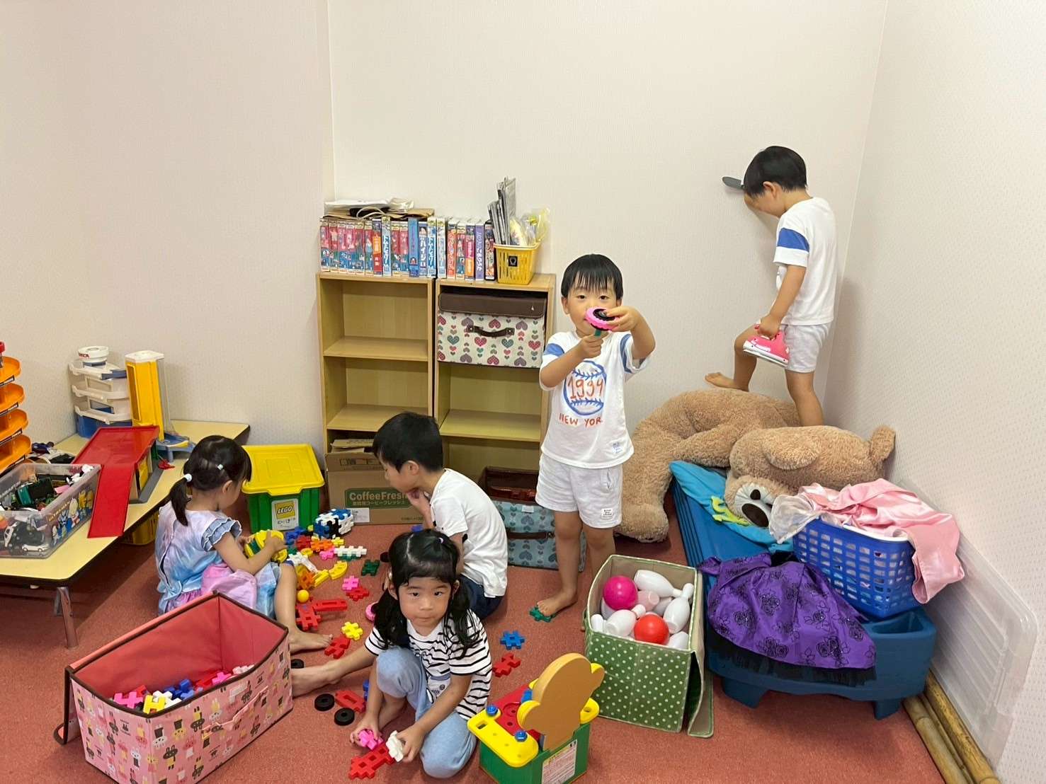 わんぱくポケット⭐️ 2025/08/19 お祭り屋台遊びだよ🎆😆✨ 夏休みもそろそろ終盤に差し掛かりました。お盆休みも明けて真っ黒に日焼けした子ども達🤗❤️ 家族、親戚の皆様と楽しくすごしたんだろうな〜🤗♥️と、みんなの表情を見て思いました。 私もサマースクールを無事に終え宝塚に帰ることができてとても嬉しく思います。😆✨ 今日は屋台遊びで毛糸で焼きそばを作ってみたり、射的、お面をかぶり楽しく過ごしました。⭐ 今日も小学生のお兄ちゃんお姉ちゃんが大活躍です!🏖️🎇