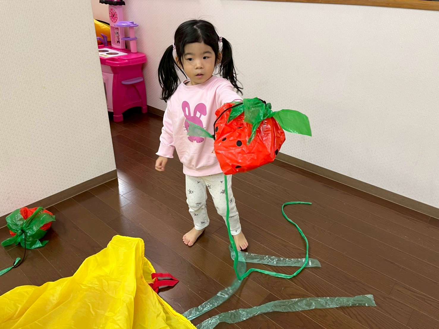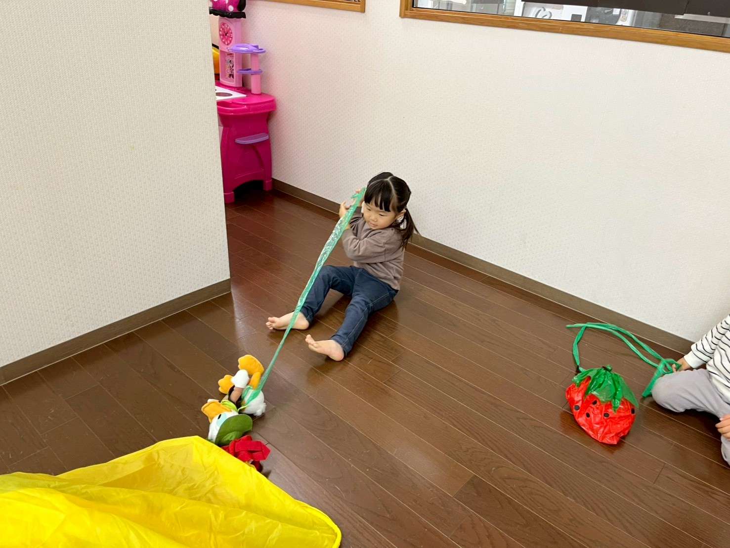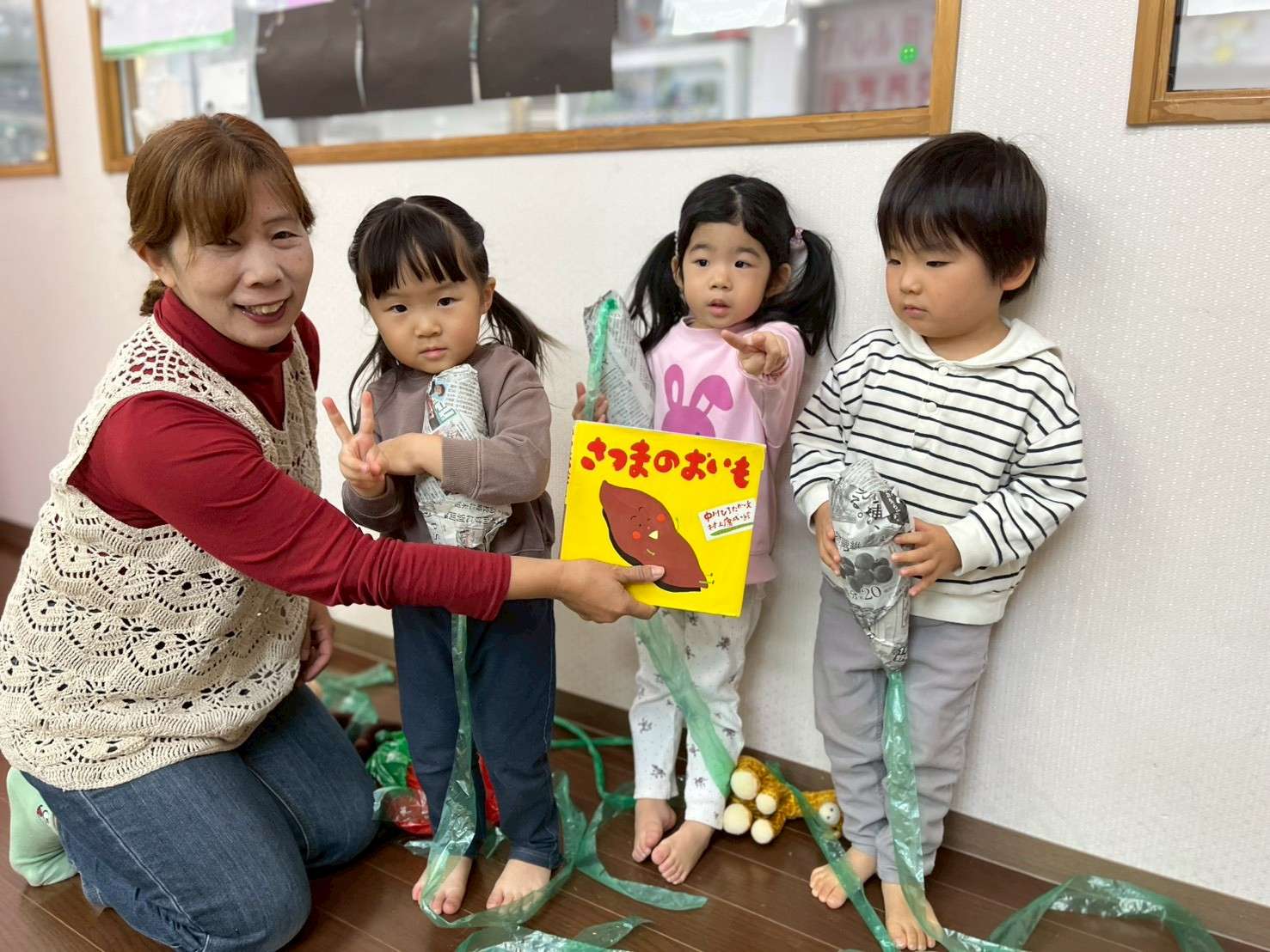 わんぱくポケット保育園⭐️ 2025/11/04 わんぱくさんの楽しい1日⭐ 今日はみんなでお部屋で芋掘り遊びをしました😆 芋のつるの先にいろんな物をくくりつけ、お芋が付いているか?確認しています。😁 アンパンマンやキリンさん、お馬さんやいちご🍓色んな物がお芋掘りの中から出てきます😙🧡 みんなで笑いながら変な芋掘り🍠を楽しみました〜✨