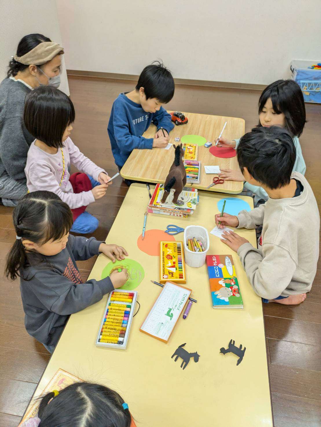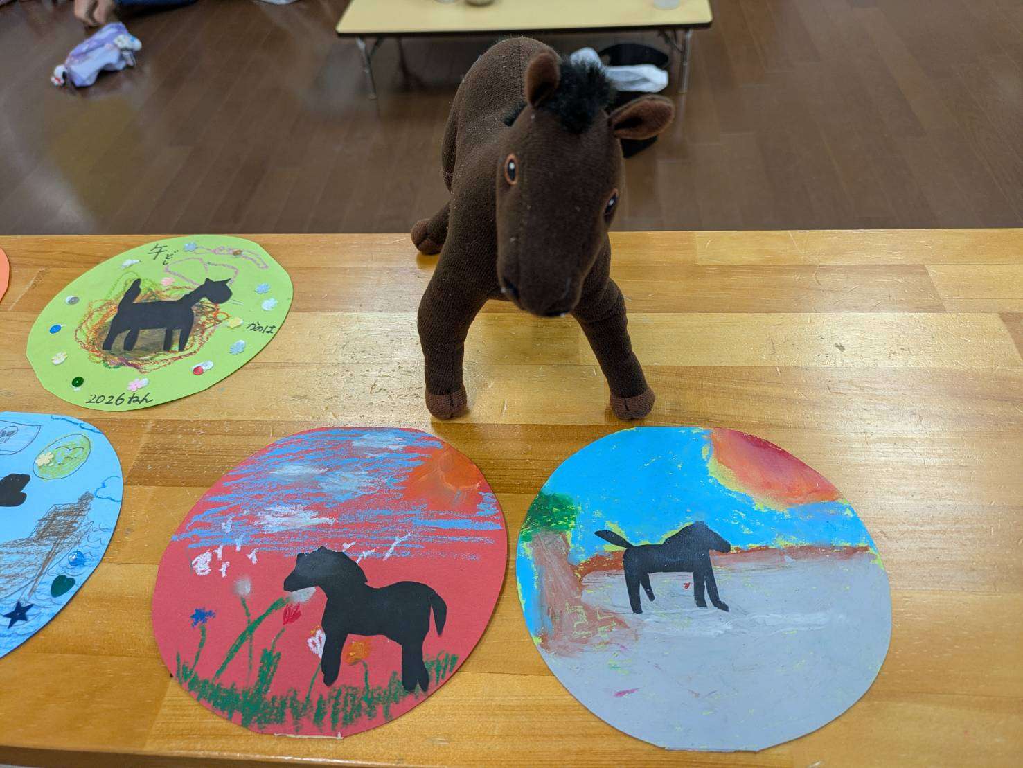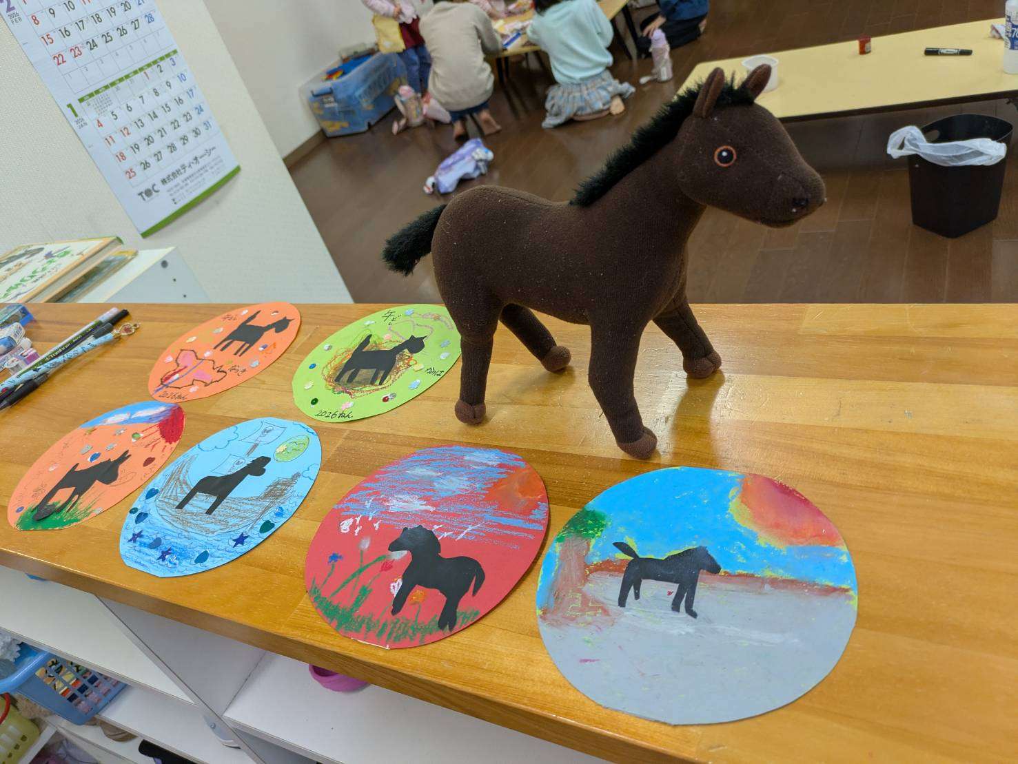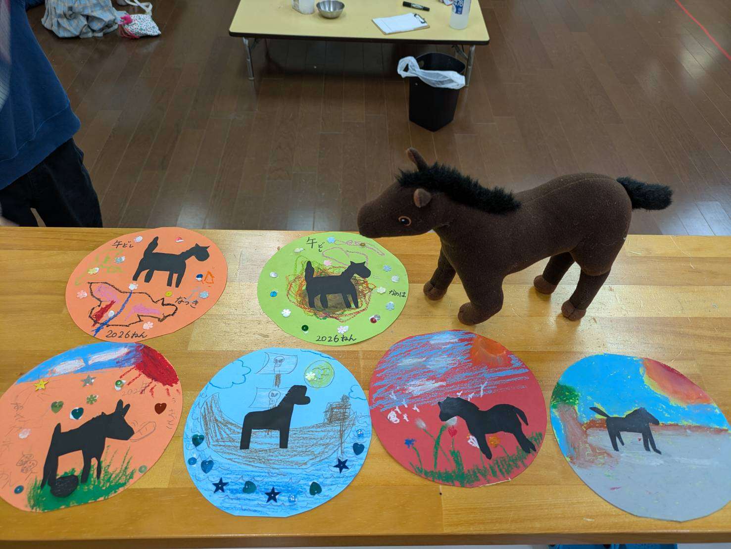 わんぱくポケット保育園⭐️ 2026/01/06 わんぱくさんの楽しい1日⭐ 明けましておめでとうございます✨🎍 今年初めてのわんぱくさん。 大きなお兄さんお姉さんも来てくれて楽しくみんなで過ごしました❤️ 今年の干支の馬の切り絵をみんなで作りました✨🏇 みんなとても上手にできました✨ 幼児教室のお友達は馬の切り絵を貼り付けデコレーションしています⭐️