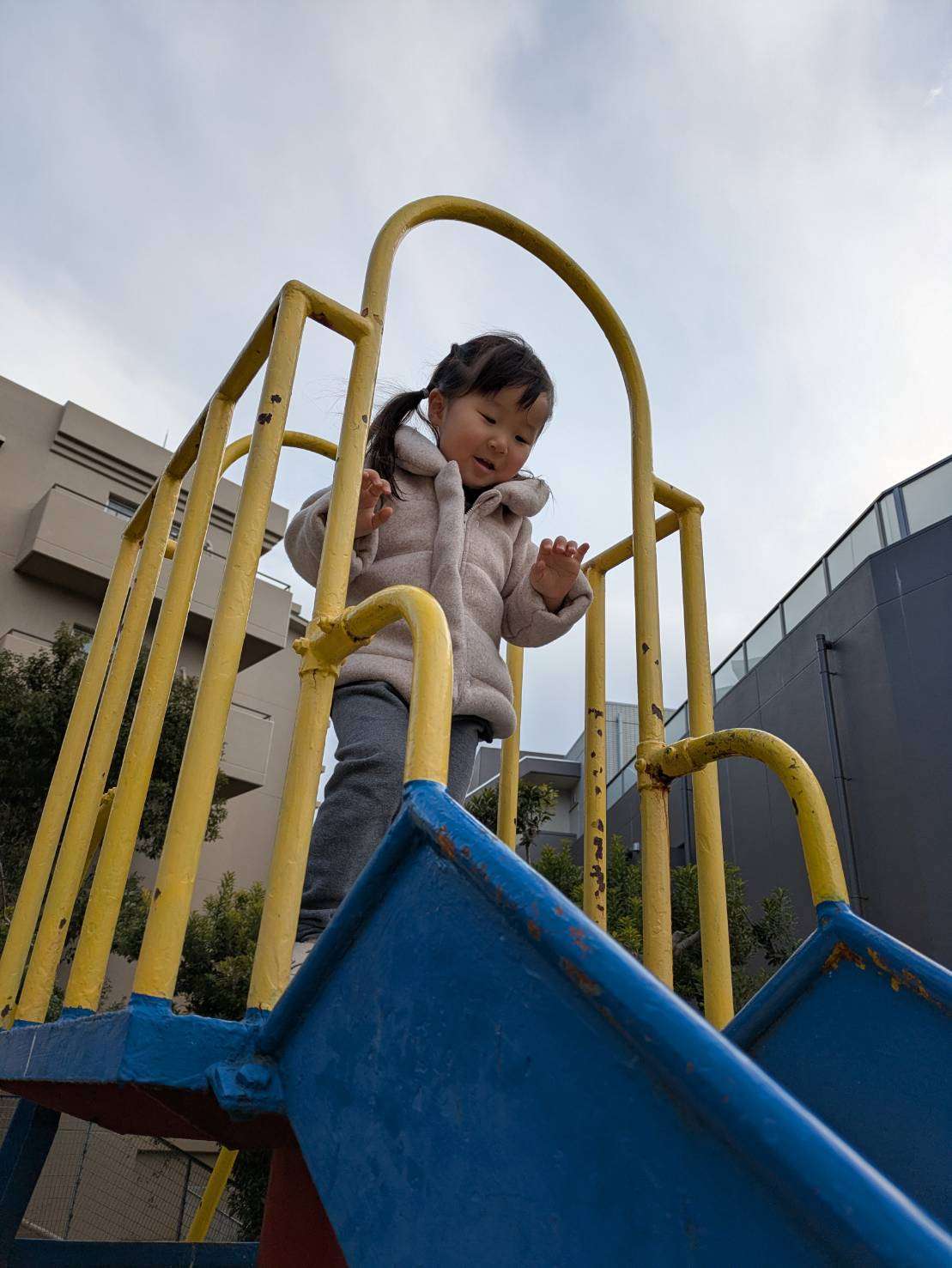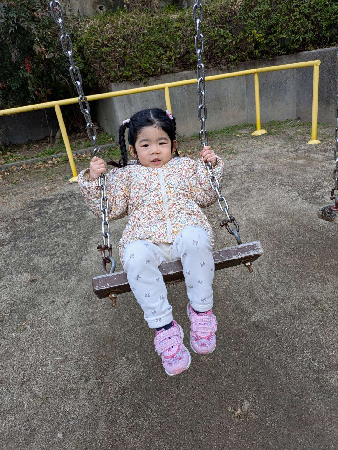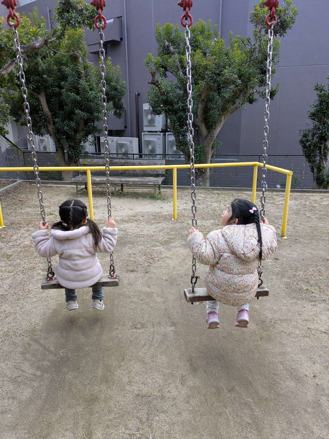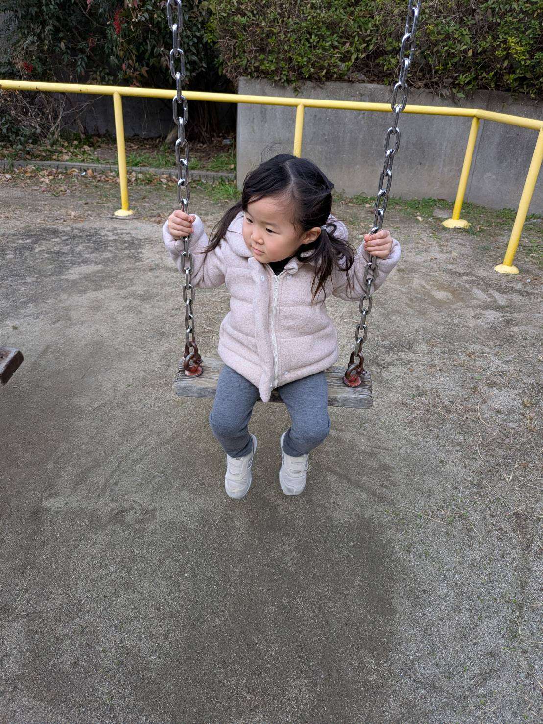 前まで少し怖かった足の届かないブランコもお友達と一緒なら乗れるようになり今日は寒空の下長い時間ブランコに揺られていました。