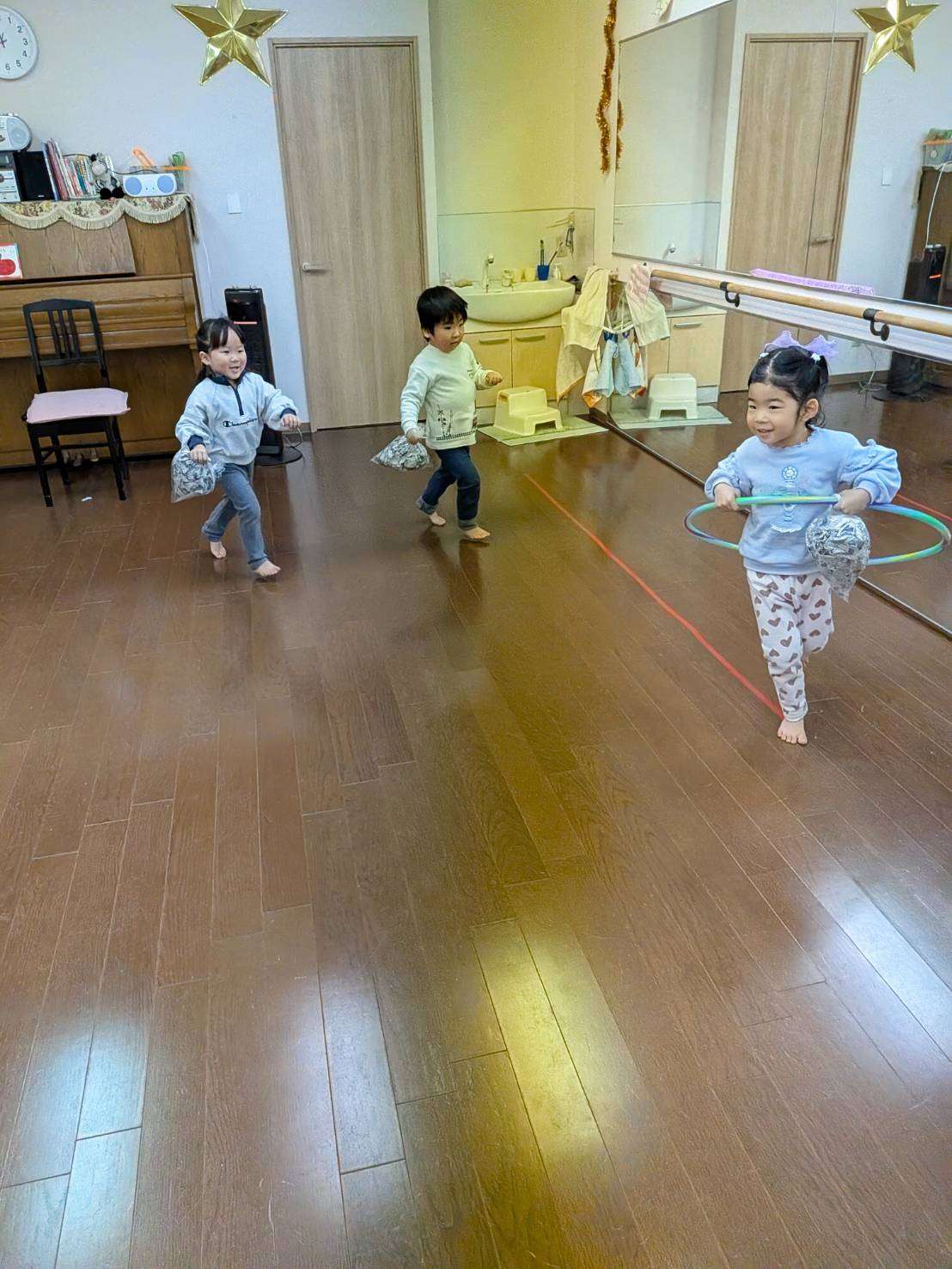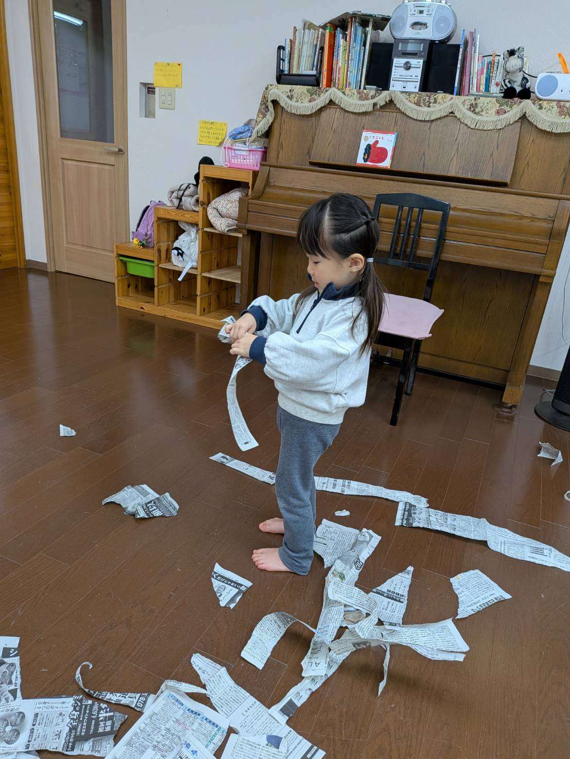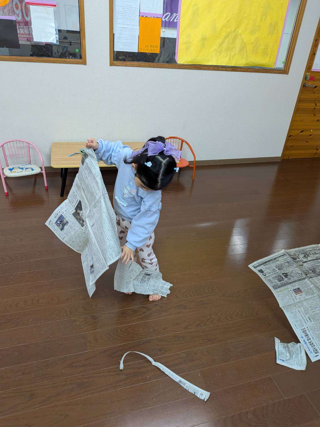わんぱくさんの楽しい1日⭐ 2026/02/19 新聞ビリビリ遊び📰 今日は久しぶりにみんなで揃って思う存分遊びました😆⭐ 仲良く穏やかな時間が流れています。🤗💕 今日は家庭で見られなくなった新聞紙を広げてみんなで遊びました📰 先生の手品から始まりビリビリ破り、おにぎりみたいに丸めて投げてぶつけ合い。最後はビニール袋に入れてビニールボールにしてフープに入れる追いかけ遊びもしました。🏃🏃 みんな息を切らしながらも楽しくてなかなか止まらず元気いっぱいです✨